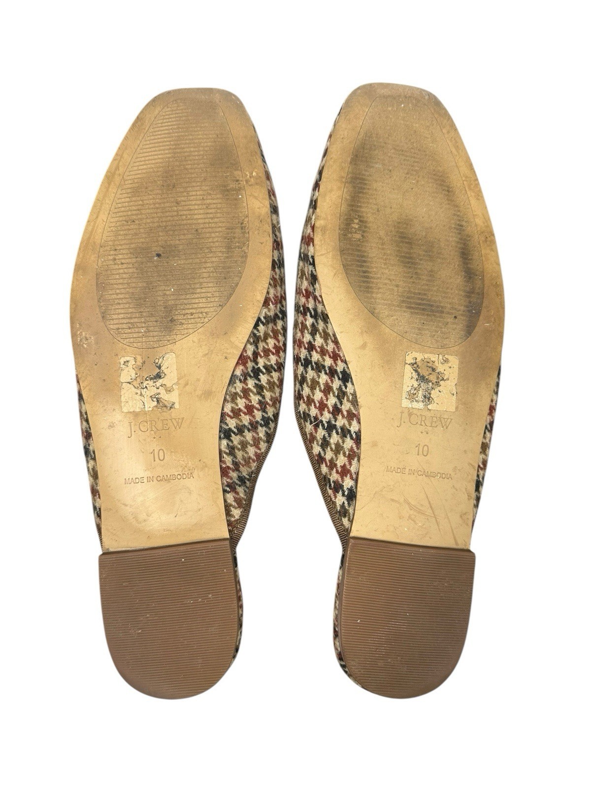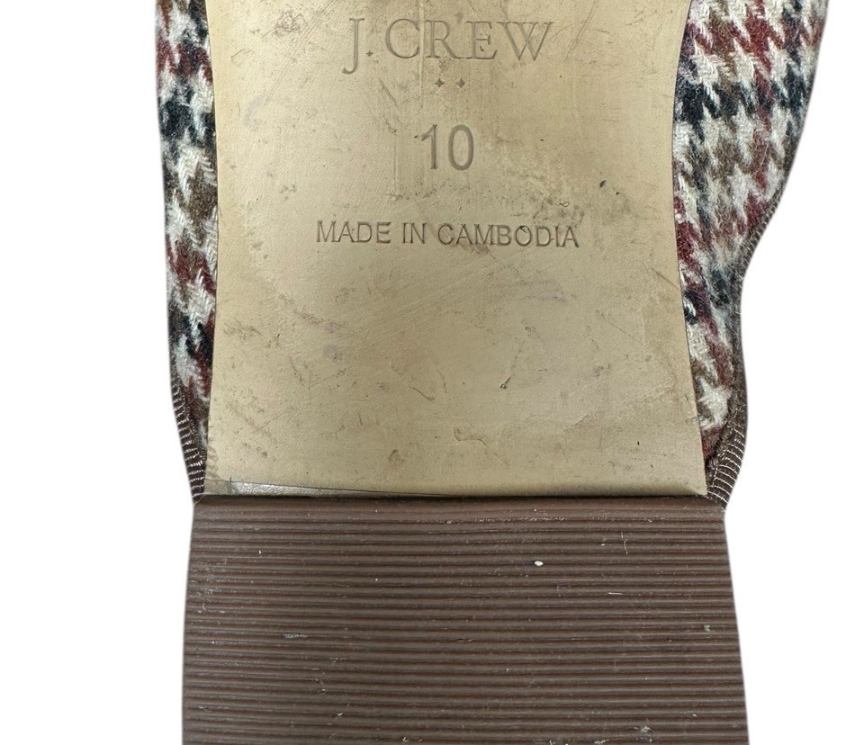 Women's J Crew Houndstooth Plaid Mules w/Bow Slip On Flats Brown Black Beige Size 10