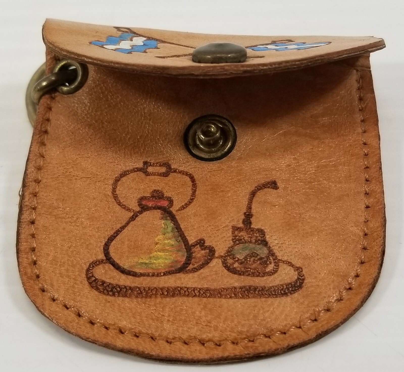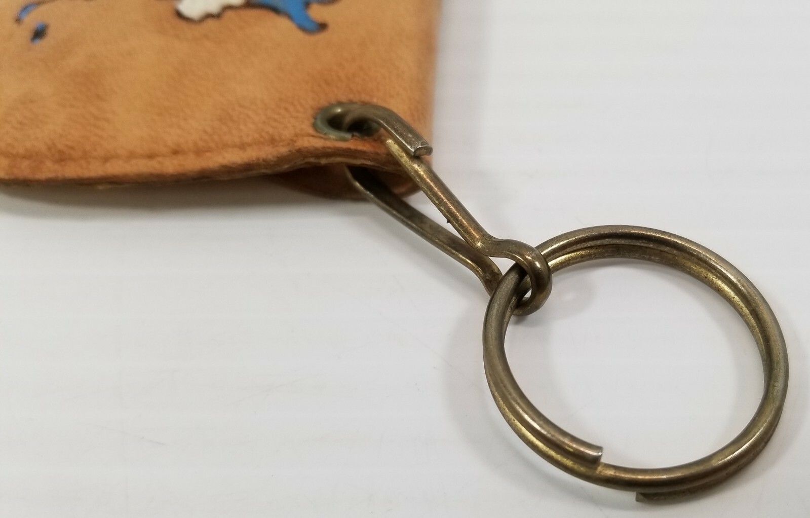 Key chain pouch is un-used, old souvenir with possible signs of age and years in storage including some tarnishing to the metal.