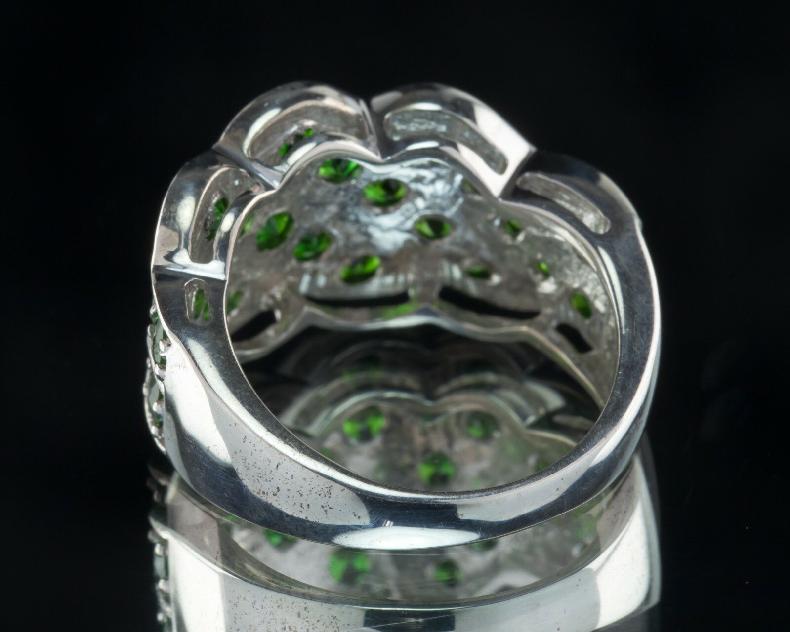 Green CZ Sterling Silver Wide Band Ring Size 6