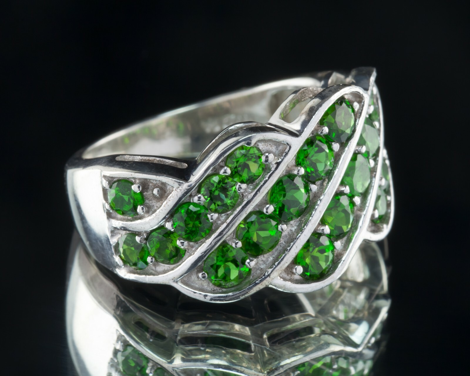 Green CZ Sterling Silver Wide Band Ring Size and 50 similar items