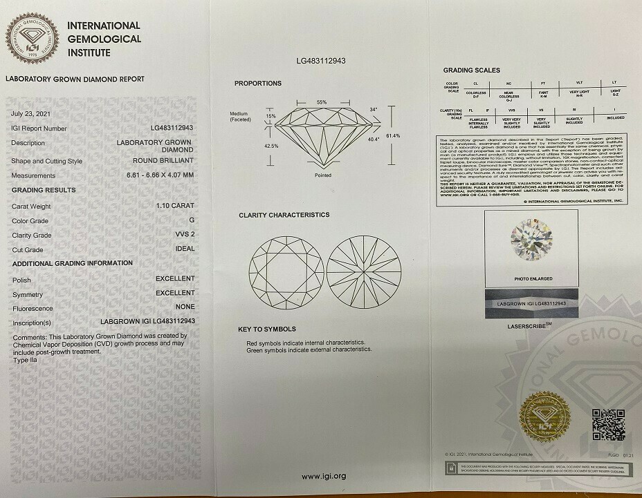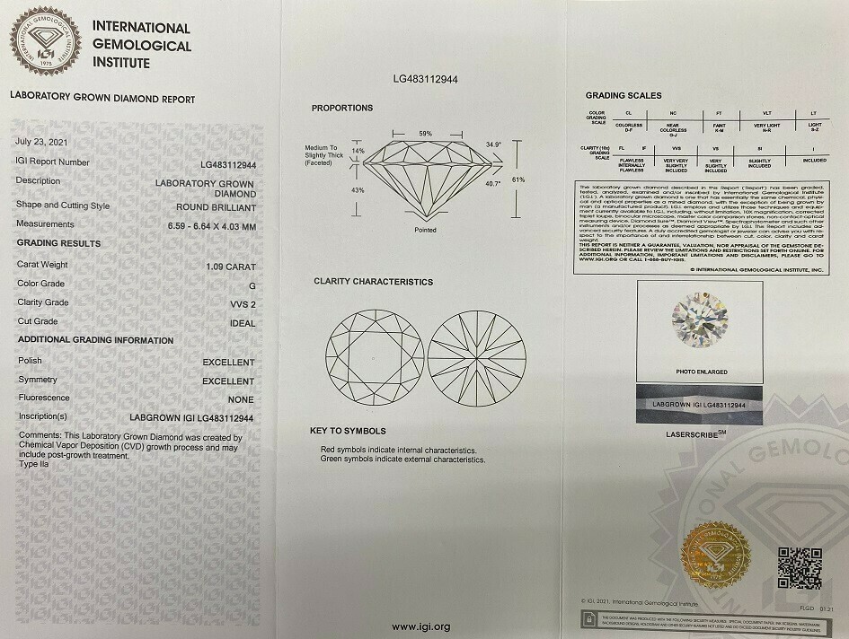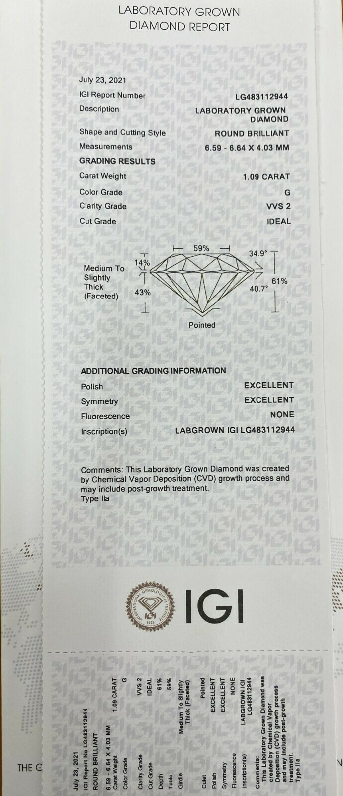 · Two matching CVD Lab Created Round Cut Diamonds w/ IGI Certificates