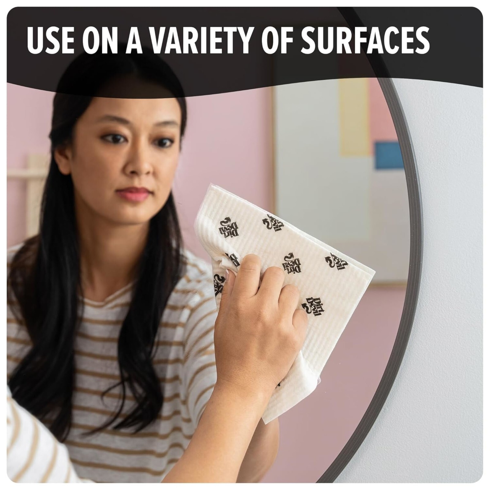 Dirt Devil Reusable Paper Towels MD52300. REUSEABLE MACHINE WASHABLE: Clean up multiple messes before needing to wash the Reusable Paper Towel. Wash in the washing machine or dishwasher and air dry. ULTRA ABSORBSENT: Perfect for cleaning any surface in your home, soaking up spills in no time. MULTI-PURPOSE CLEANING: Specially designed for wiping countertops, cleaning Windows, and drying dishes, sinks, tubs, and showers. FAST DRYING: Simply air dry after using or cleaning. SIMPLE STORAGE: The hole used for hanging is ideal for keeping the cloth within reach and properly drying. Package Contains: 6 Reusable Paper Towels. Manufacturer Part Number: MD52300. RO-MD52300