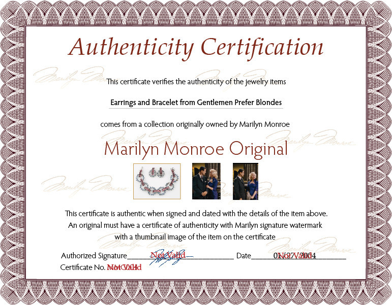 Costume Jewelry Worn by Marilyn Monroe in "Gentlemen Prefer Blondes" Memorabilia