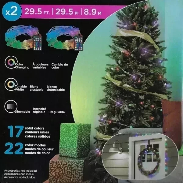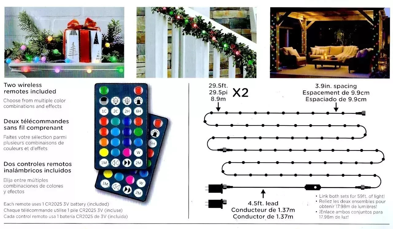 2x Enbrighten Color Changing LED Bubble Lights 29.5 ft 90 Bulbs Remote Christmas