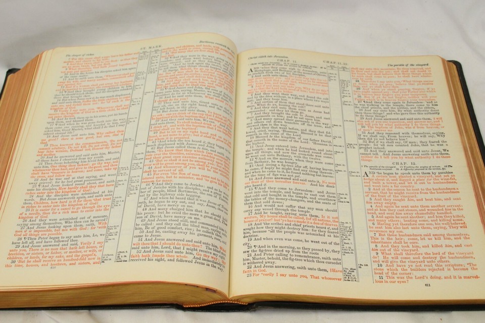 New Standard Reference Bible Blue Ribbon Edition: (Authorized or King James Version) School and Library Reference Edition Red Letter Edition Pictorial Pronouncing Dictionary and other Interesting Instructive Features Leather Bound – January 1, 1951