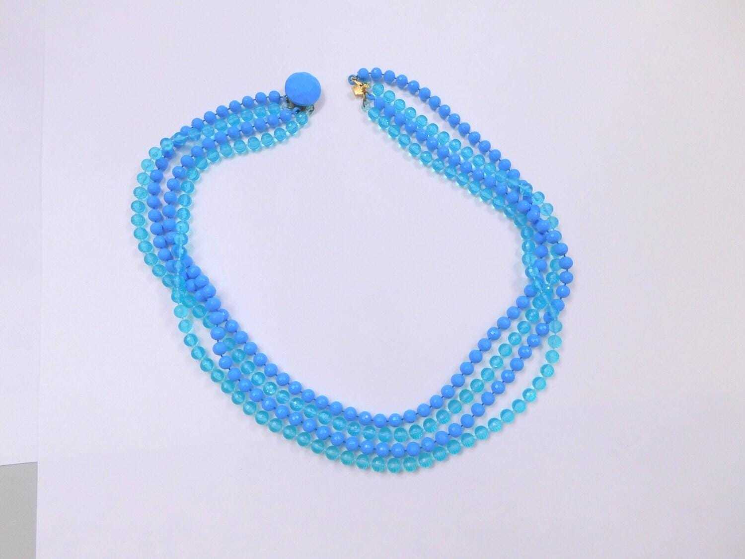 Bright Blue Four Strand Beaded Necklace, and 50 similar items