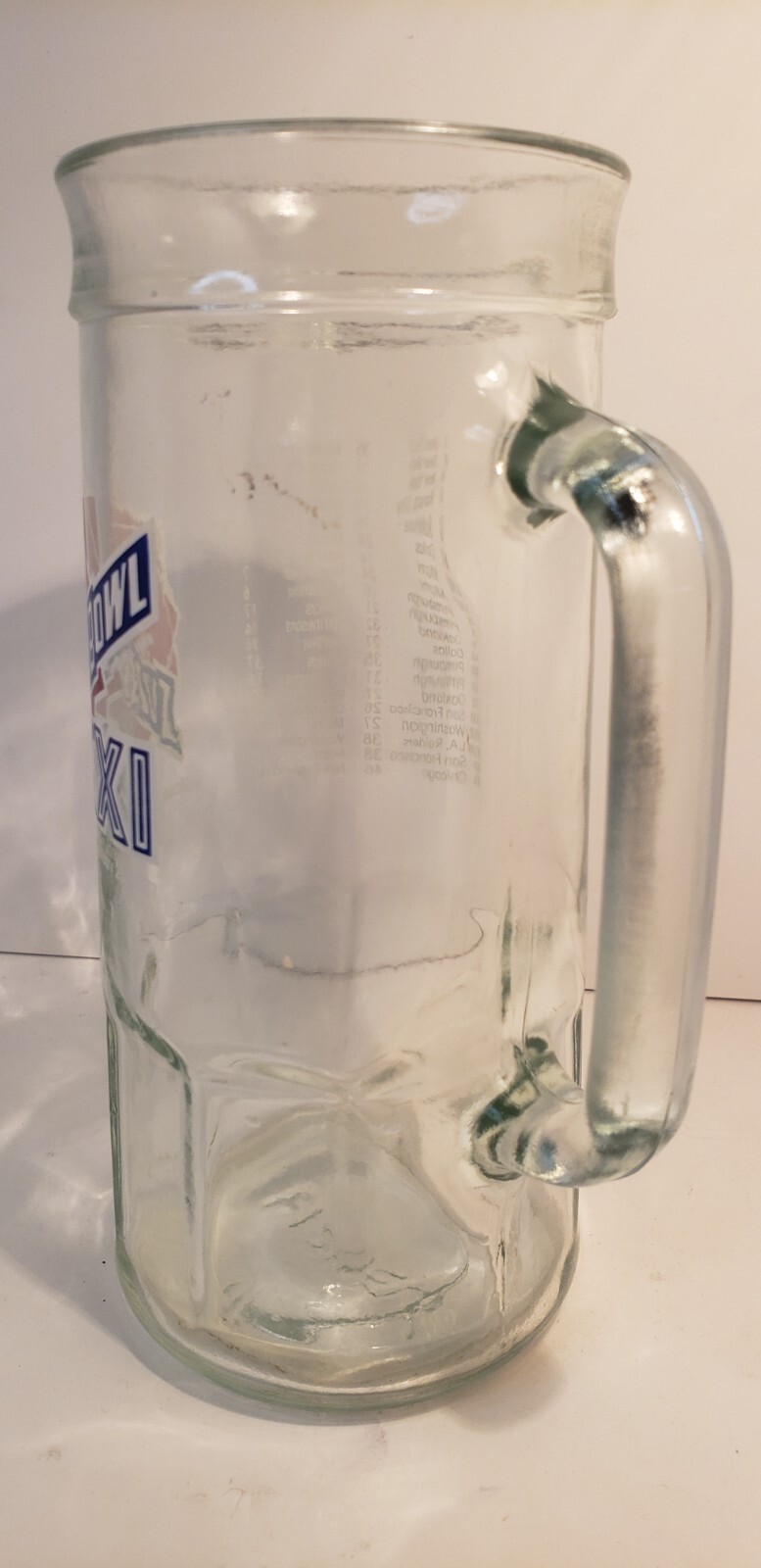The NFL Mug commemorates Super Bowl XXI, held at the Rose Bowl in Pasadena on January 25, 1987, where the Giants emerged victorious over the Denver Broncos. The mug is a promotional item from Fisher Nuts, featuring the Fisher brand. With a capacity of less than 8 oz, the regular-sized mug is a collectible piece for fans of the National Football League and the Giants. Perfect for enjoying a cold beverage while celebrating the historic Super Bowl win.