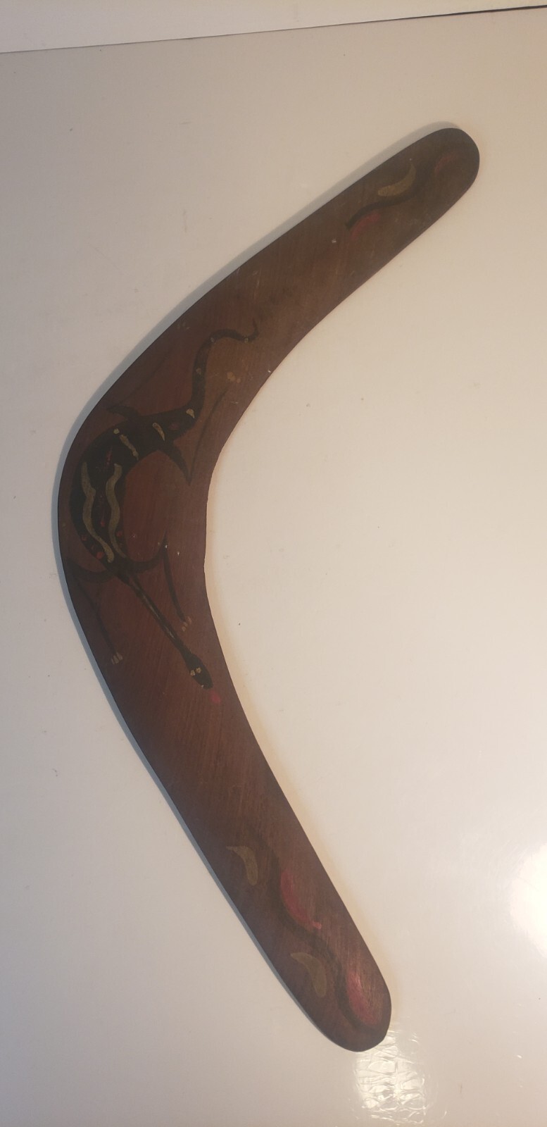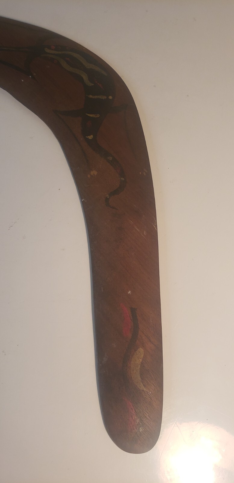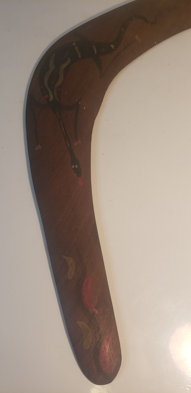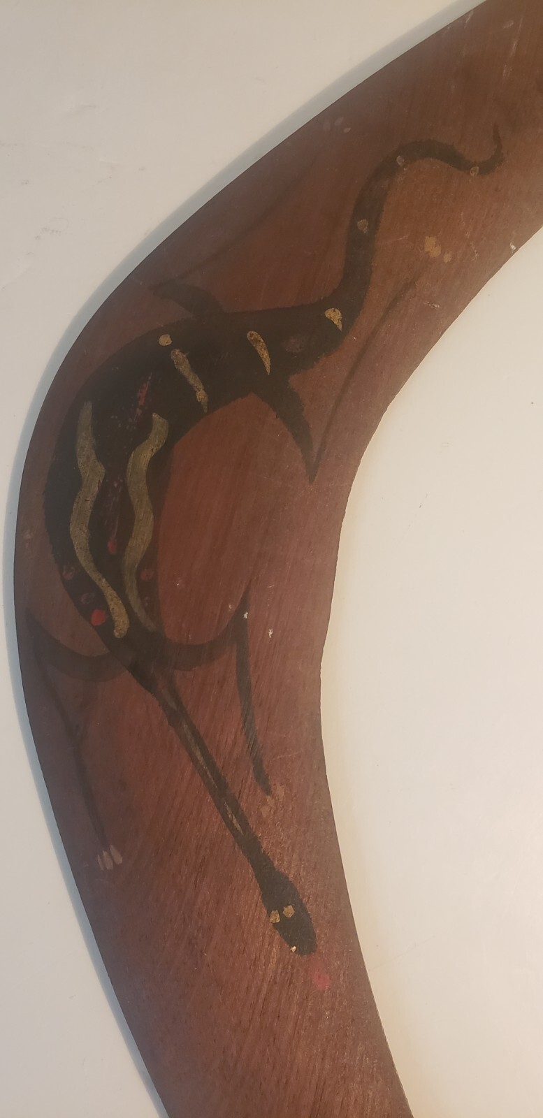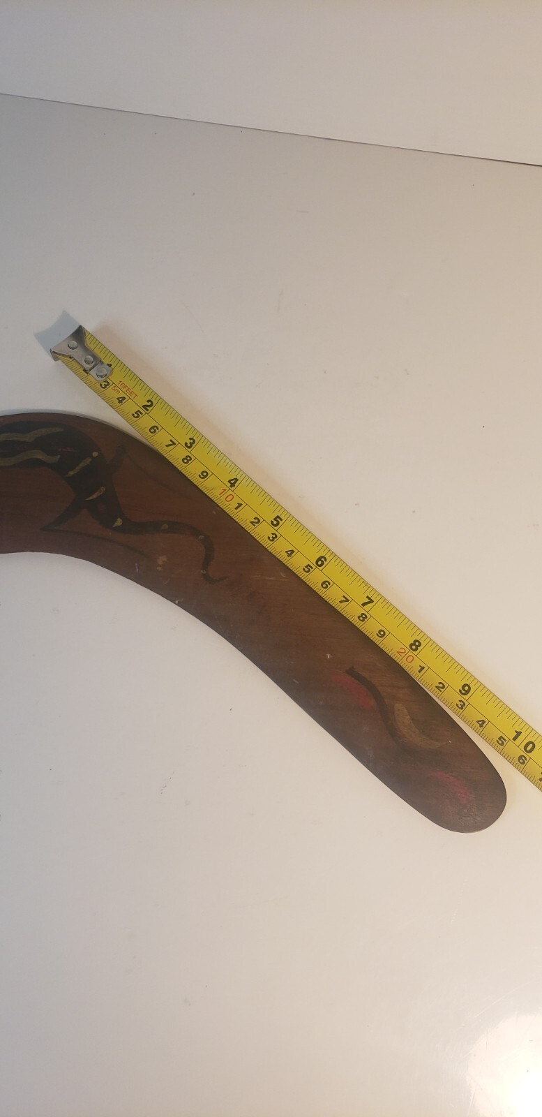 Vintage 16" Wooden Boomerang with Hand-Painted Lizard Design Australia