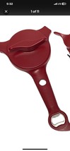 The Kuhn Rikon 5-in-1 Multi Purpose Jar Bottle Opener is a versatile kitchen gadget that can open jars, bottles, pull tabs, and twist tops with its 5-in-1 design. Made of durable plastic in a solid red color, this opener measures 5" x 2" x 9.75" and is a practical addition to any kitchen tool collection. Its compact size makes it easy to use and store, while its innovative design ensures a convenient and efficient way to open various types of containers with ease.