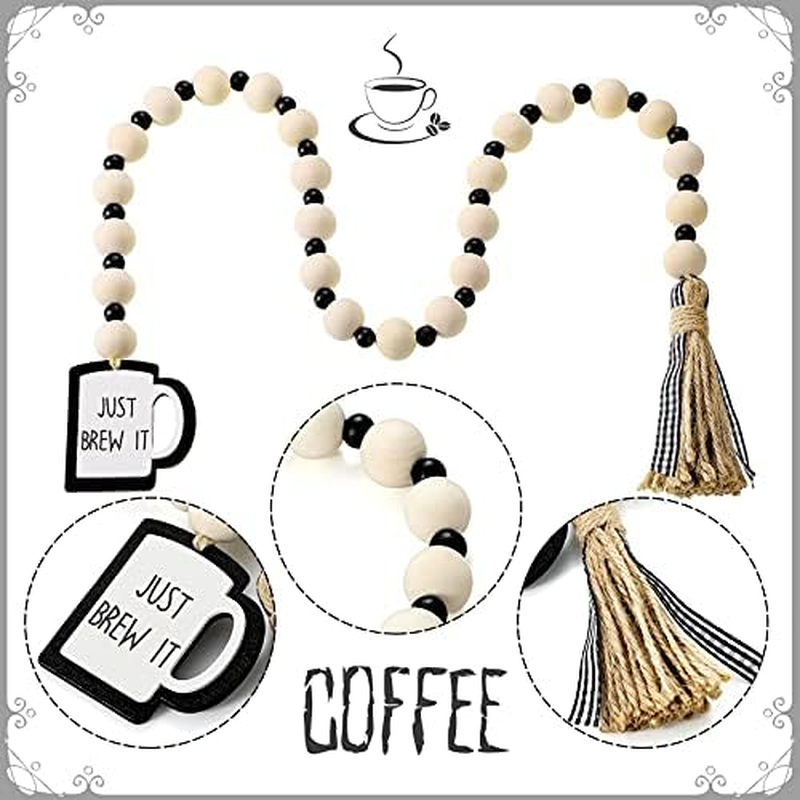 Coffee Bar Decor Wood Bead Garland with Tassel Coffee Bar Try Decor Accessories,
