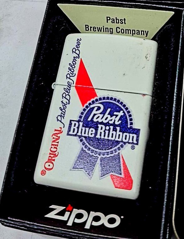 Sharp White Plue Ribbon Beer Slash Zippo and similar items
