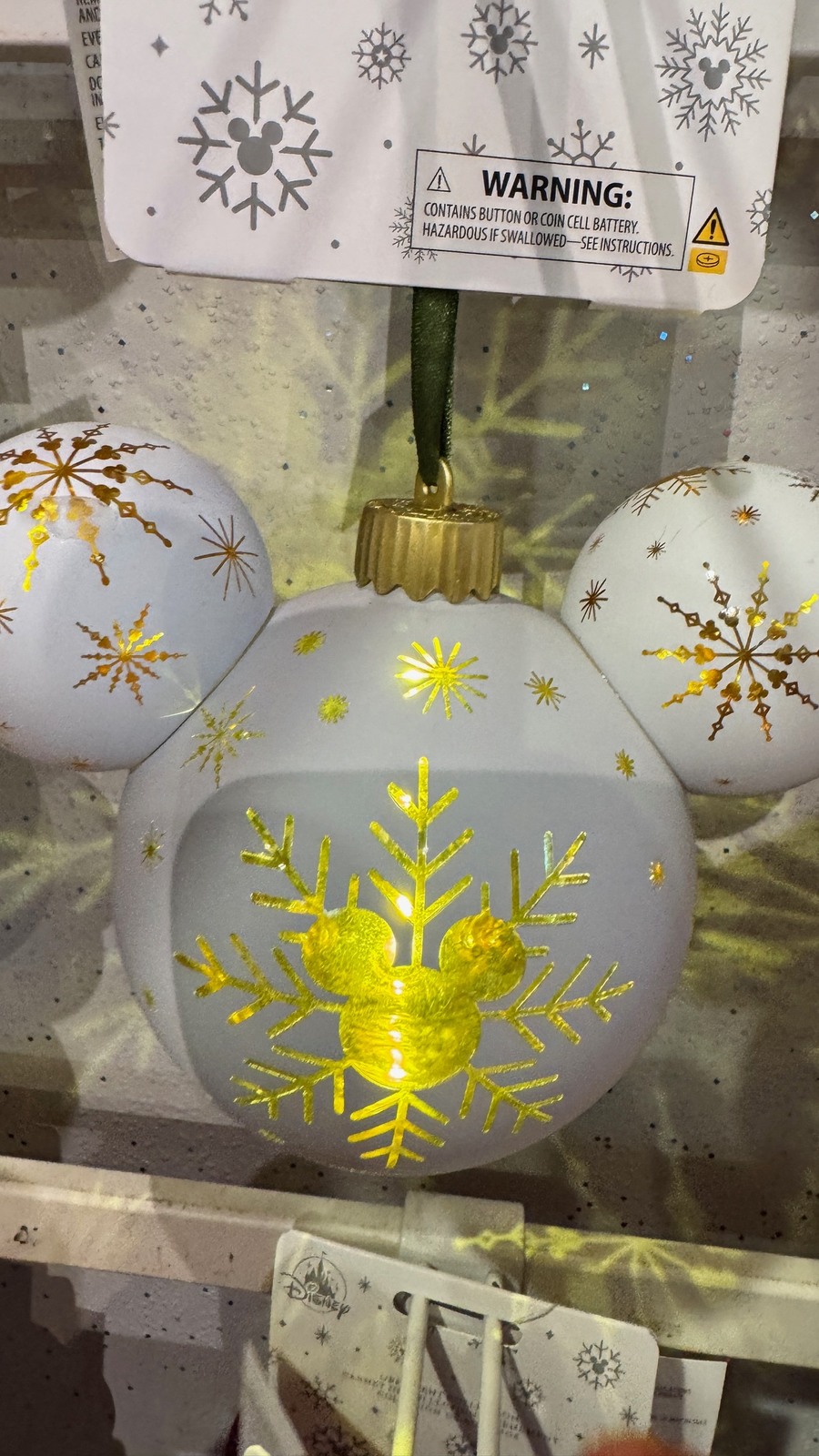 This is a Disney Parks Mickey Mouse Shape White w/ Gold Color Snowflake Light Up Ornament. Brand new, smoke free environment. Combined shipping available on most items. Please visit our website at www.wdwcollectible.com