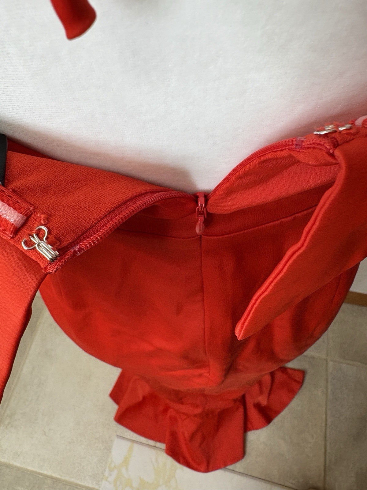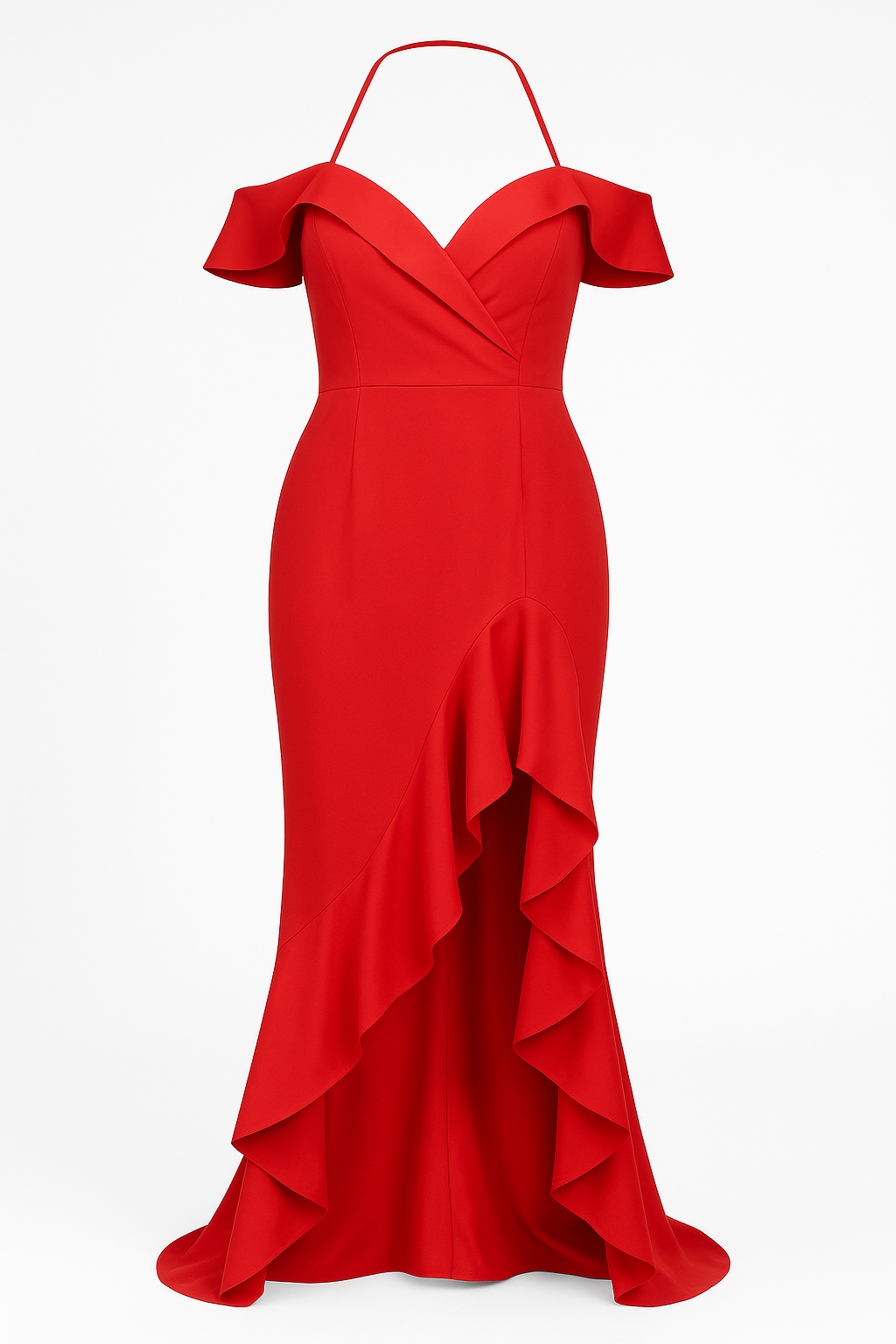 Rock this red statement Chrissy Teigen gown for any event. Save for holiday parties or New Year?s Eve.