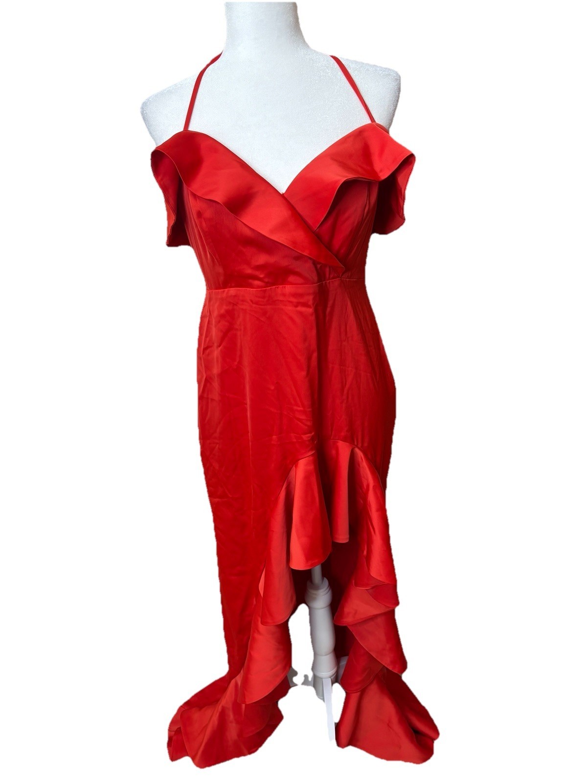 Revolve Satin Ruffle Chrissy Teigen Gown Sz M Holiday Christmas Cocktail Dress