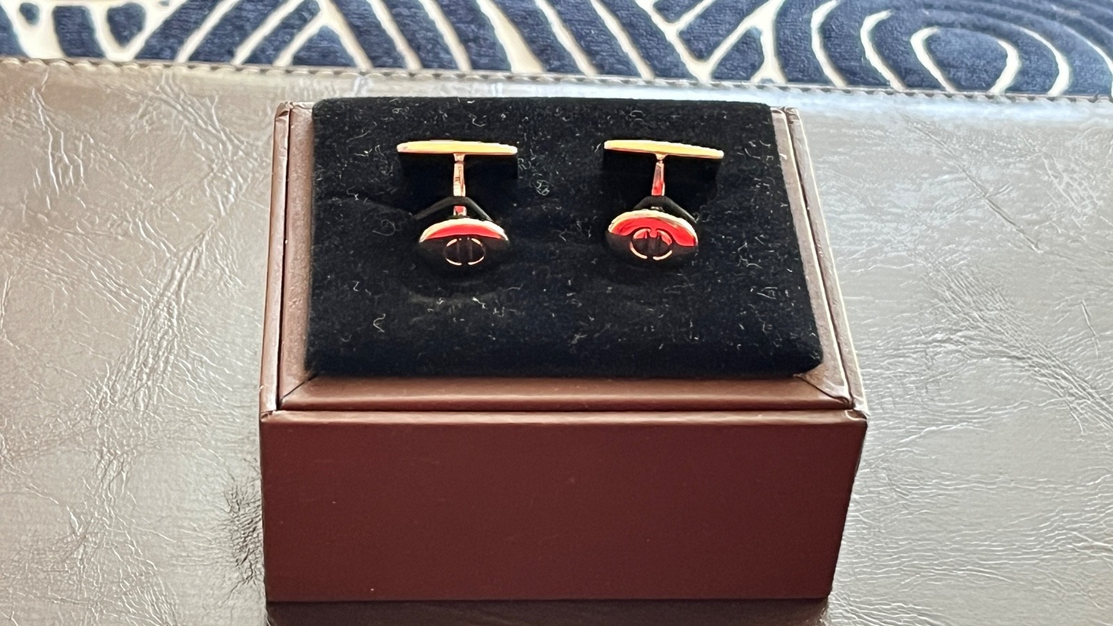 ONE PAIR DAVID DONAHUE CUFFLINKS, MARKED 925. THE BOX IS INCLUDED, BUT IS NOT THE ORIGINAL DAVID DONAHUE BOX.