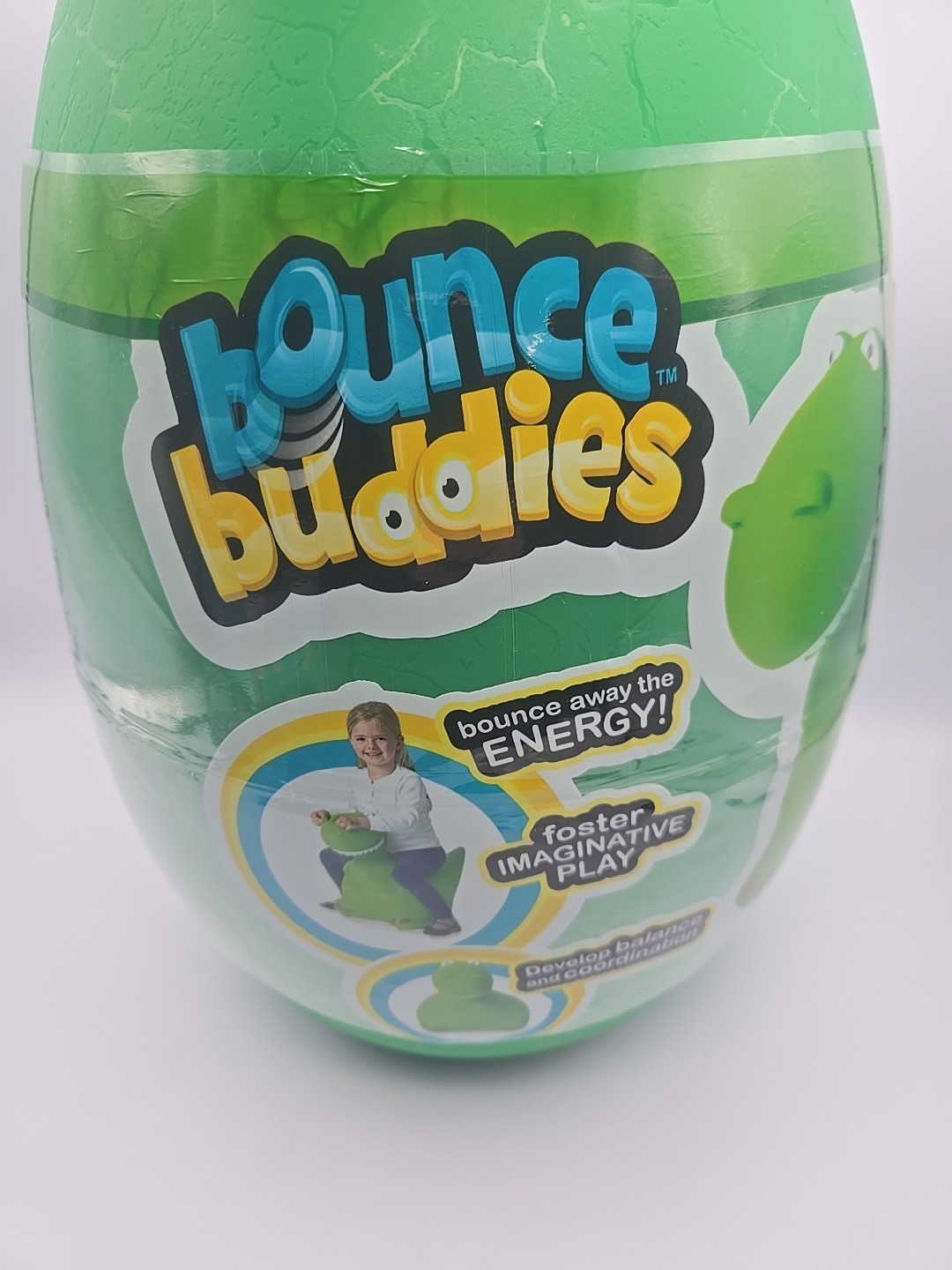 The Bounce Buddies Dinosaur T-Rex Tommy the T-Rex Ride-on Inflatable Bouncer is a fun and exciting toy for children aged 2-11 years. With a unique T-Rex character design, this bouncer provides hours of entertainment for kids. Made with durable materials sourced from China, this inflatable bouncer is perfect for outdoor play and is sure to be a hit with young adventurers.