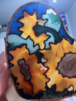 Stained Glass Heart Shaped Night Light Sunflowers *flaw* Untested
