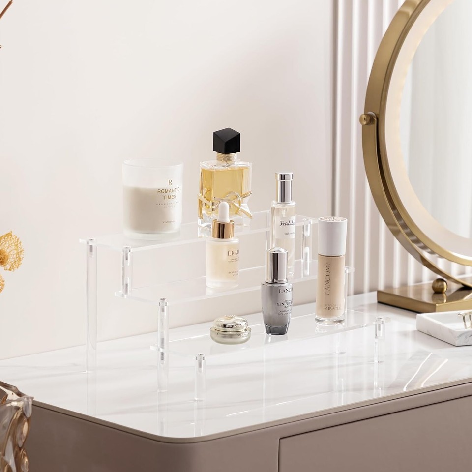 Famyards Acrylic Display Risers, Perfume Stand Organizer 3 Tiered 11" x 3" x 5"