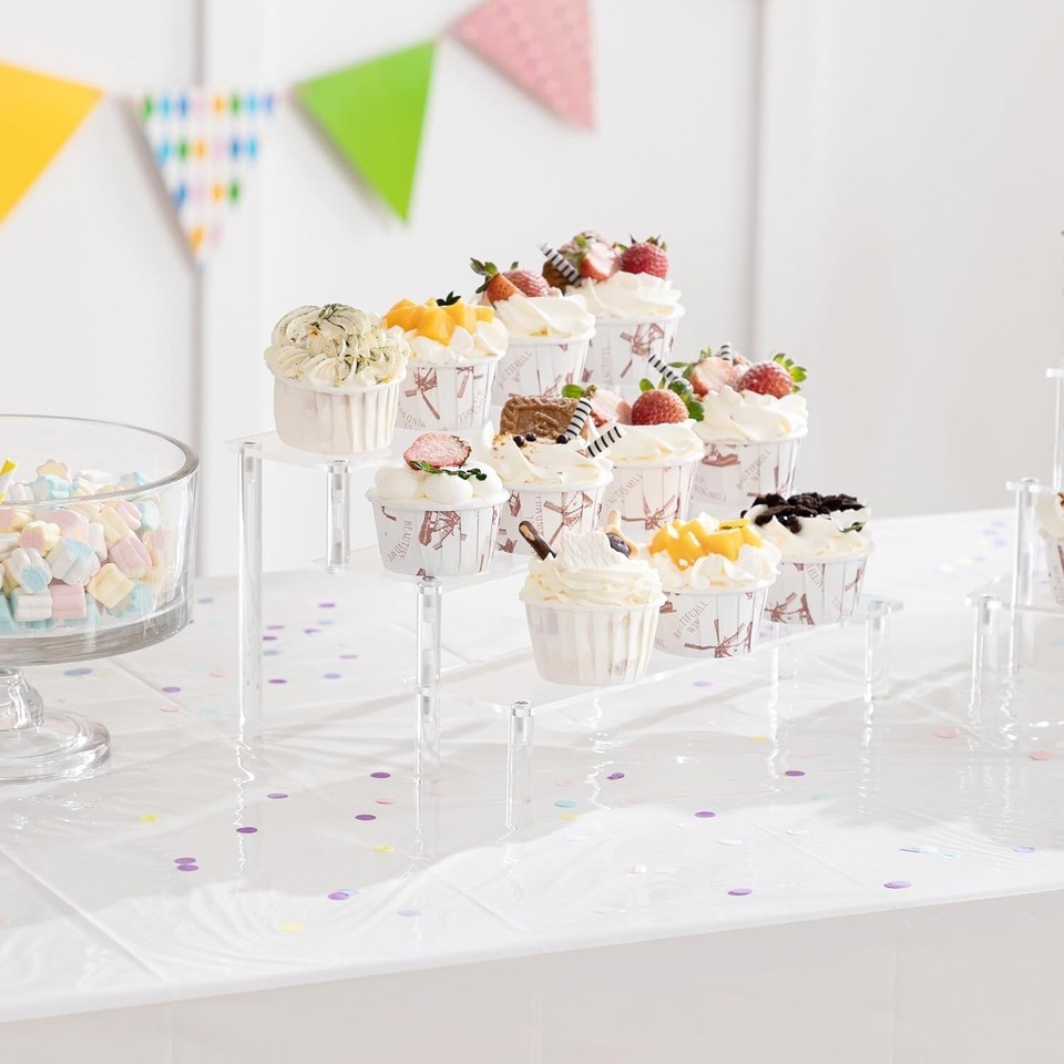 ?Acrylic Riser Display?3 tier cupcake stand is simple design and durable, provides enough space to cologne perfume, cosmetic, skincare lotion, Amiibo Funko POP Figure, dessert, cupcake risers,jewelry, collectibles and etc.