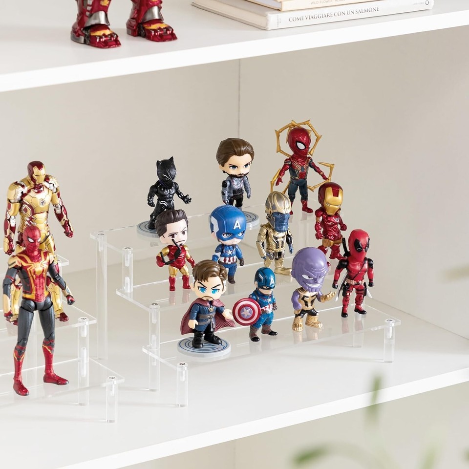 ?Multi-function Stand?Acrylic display risers can keep your things organized, saves space. You can find them quickly and easily, no more searching messy drawers, all of your things. Acrylic risers for display shelves are easy to place, fit on your dresser, table organization, funko pop display case, party, kitchen, shop,and are also suitable for all colors or themes of the room.