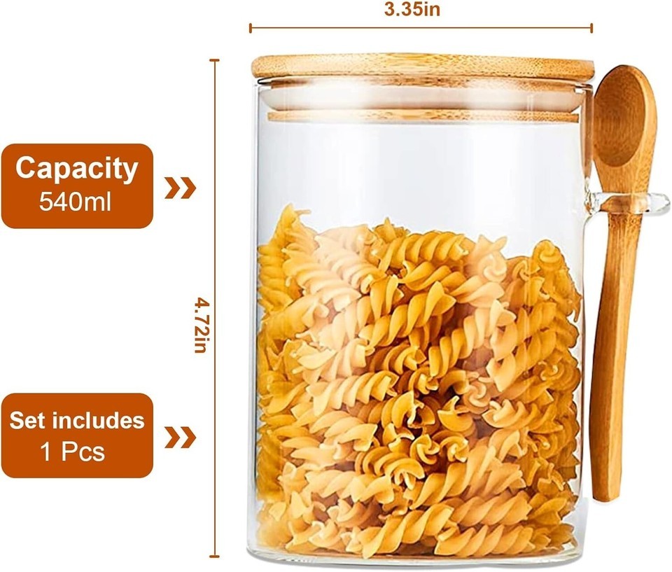 Glass Jar with Bamboo Lids,Overnight Oats Containers 18.5oz/540ML (1PCS)