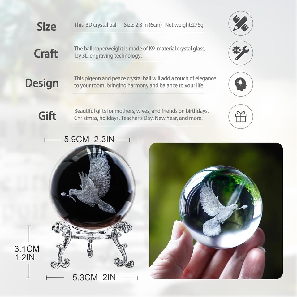 ZEERSHEE 60mm 3D Peace Dove Crystal Ball and 45 similar items