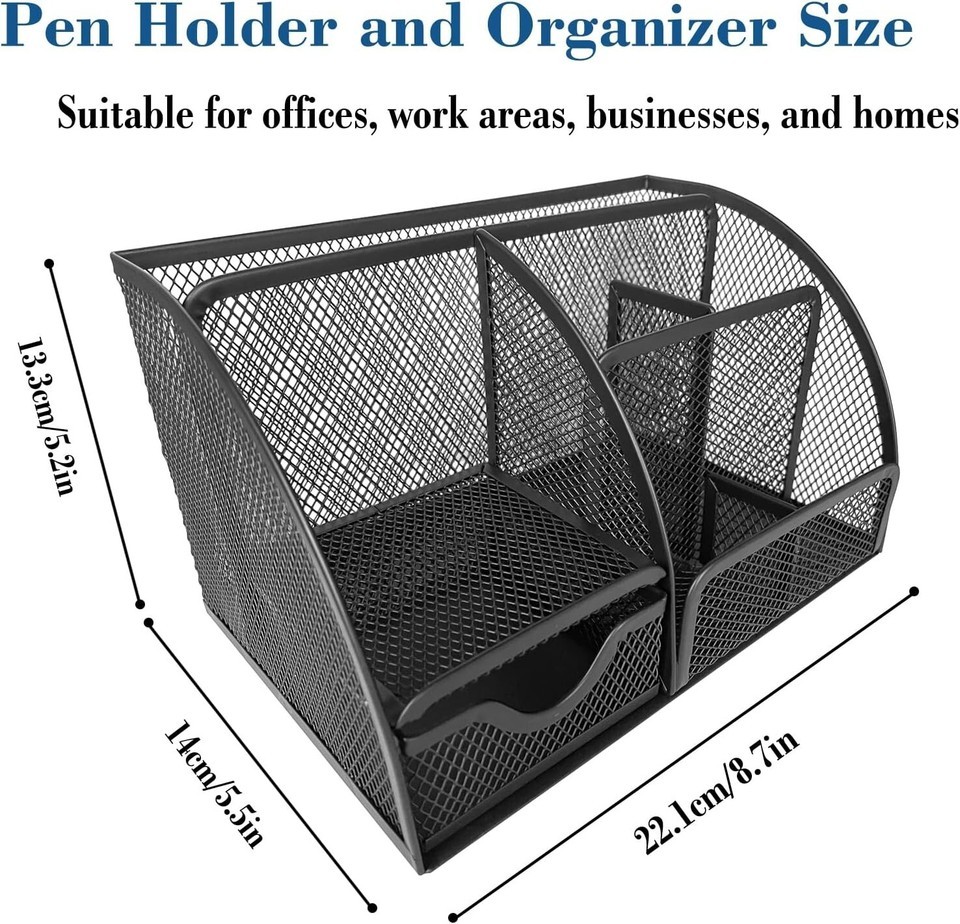 Multifunctional Storage: 7 compartments and a pull-out drawer, capable of storing writing tools, scissors, letter openers, etc., keeping the desktop clean and orderly.