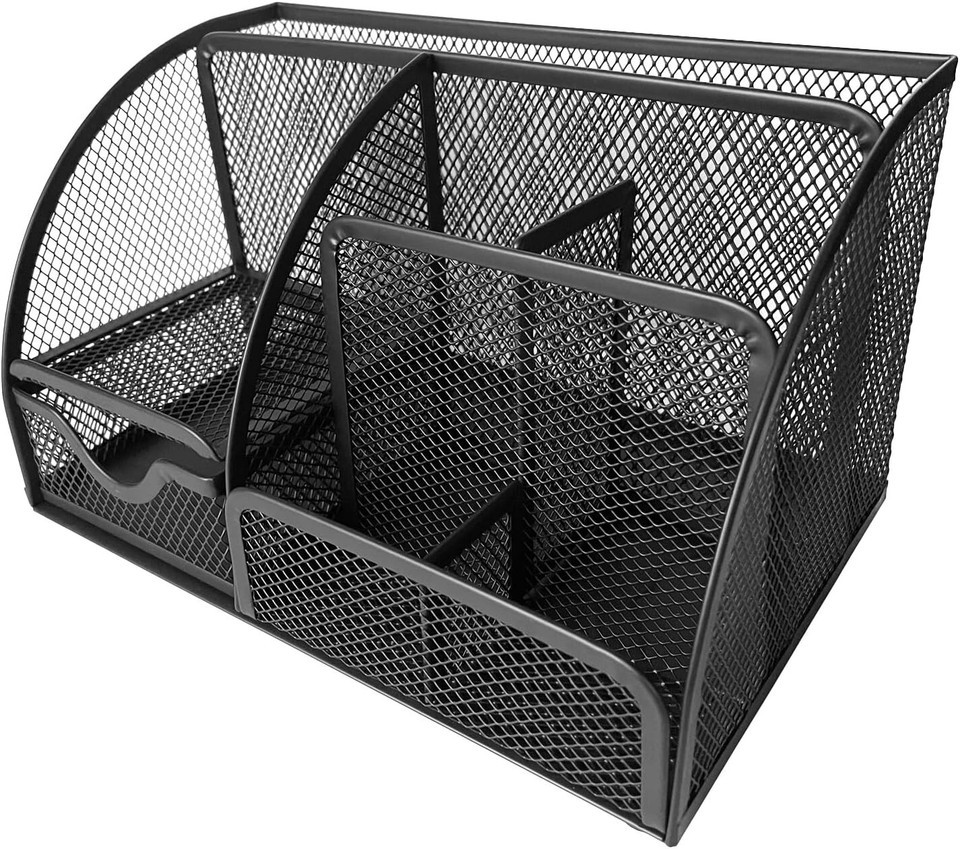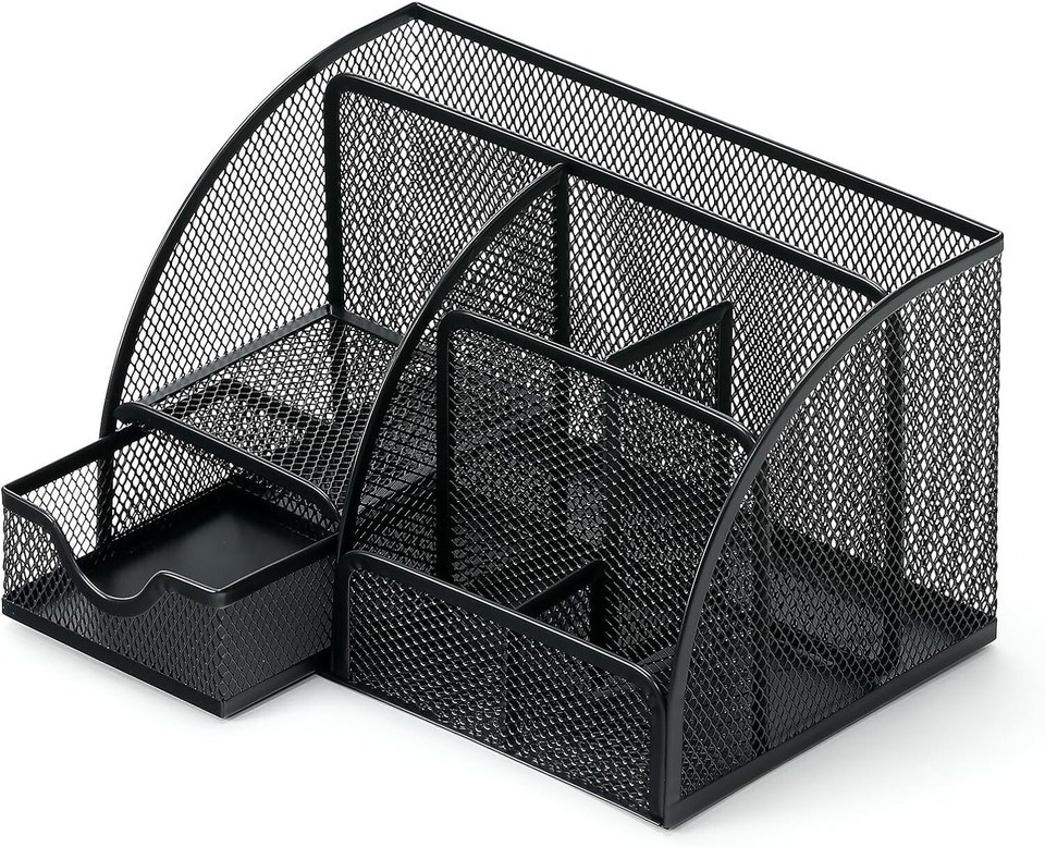 WAFJAMF Black Mesh Pen Holder and Organizer with 7 Compartments
