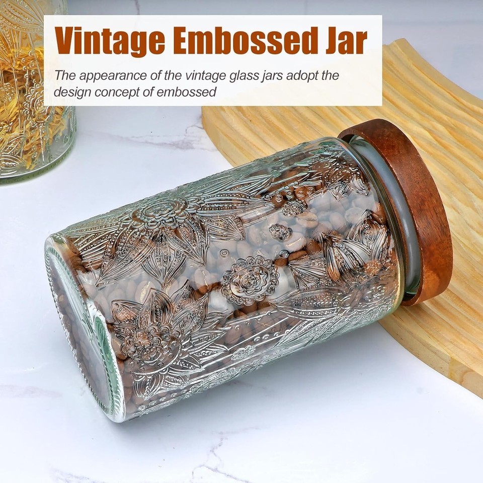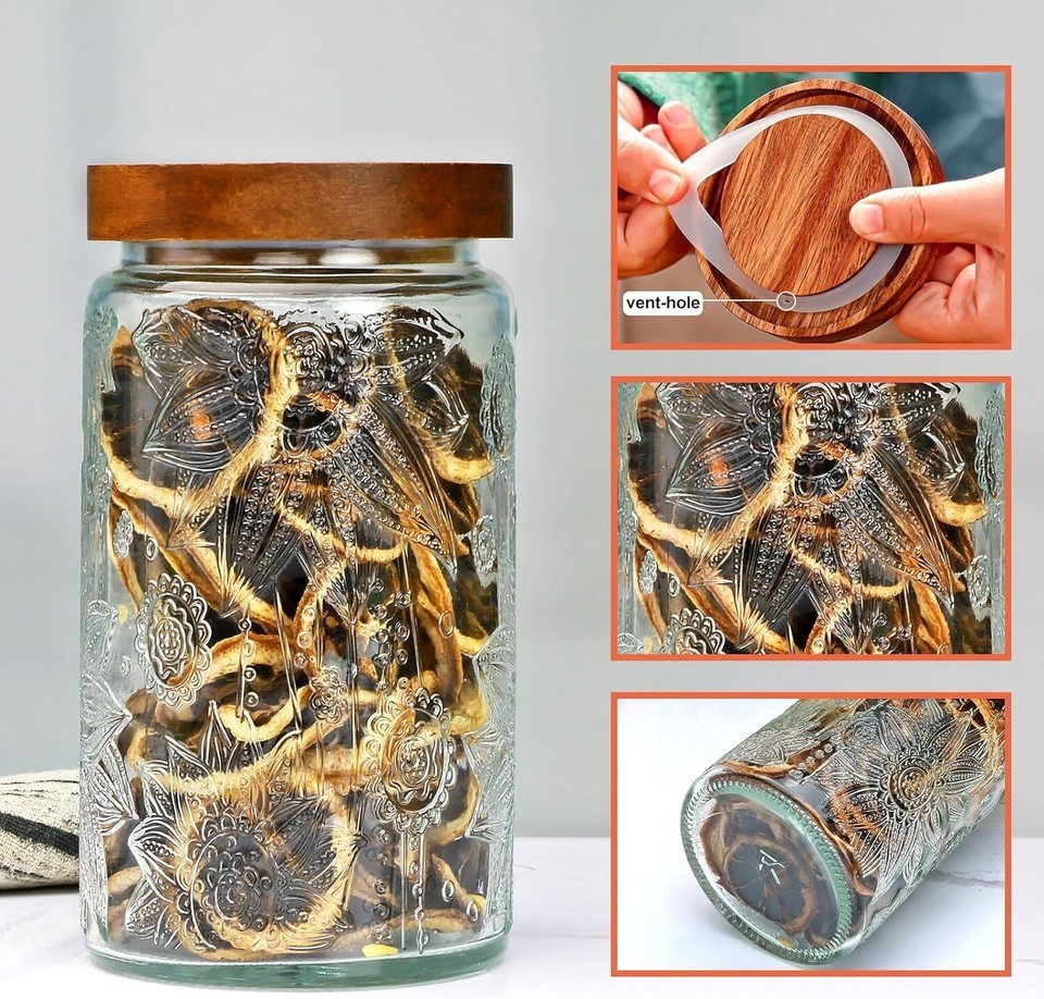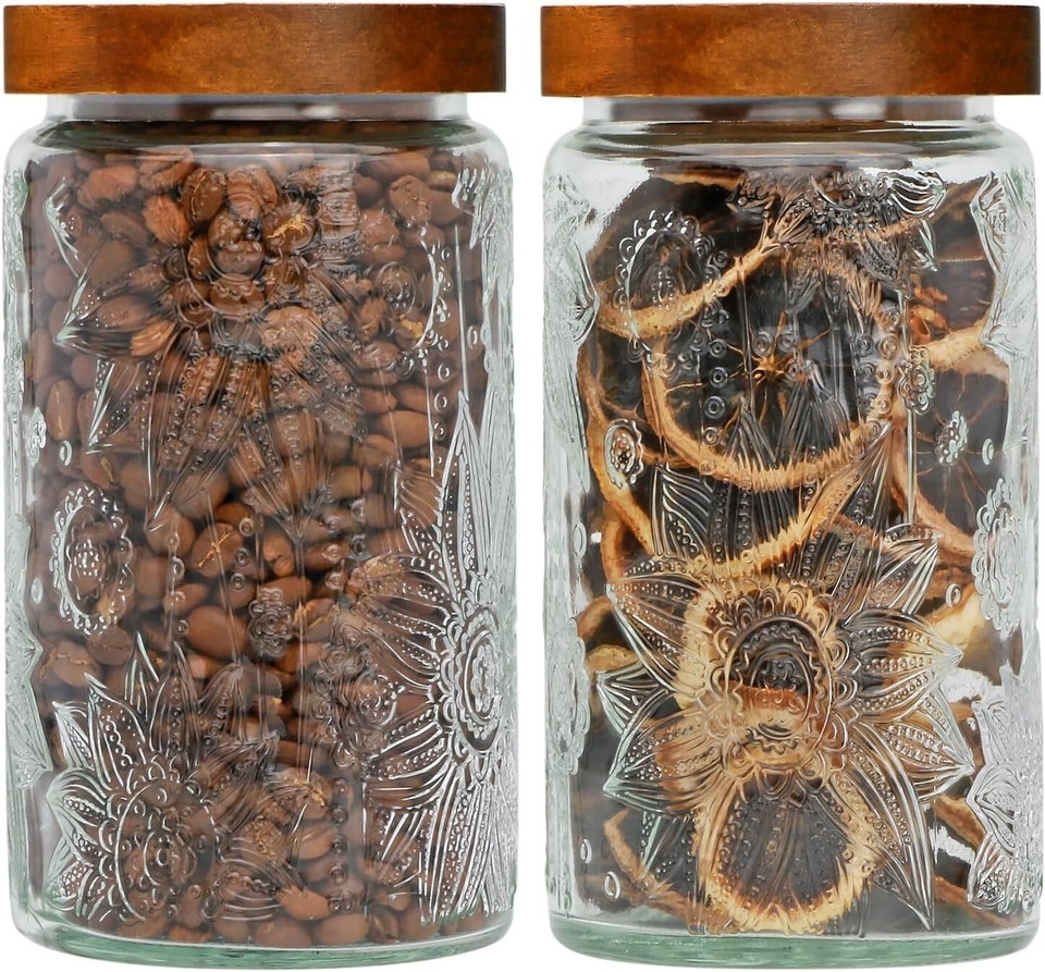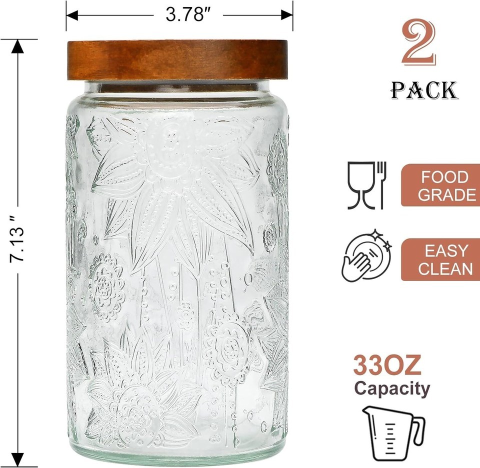 Brajttt Vintage Style Glass Storage Jar with Wooden Lids Glass Jar 33oz, 2Pcs