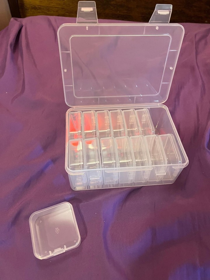 APPLICATIONS: Perfect for organizing and storing small items: rock collection, small accessories, earrings, rings, necklace, threads, beads; fishing hook, fish lure bait; letter board letters, pills, small drugs, electronic components, art DIY crafts, nails, nuts, and bolts, etc. You can also use a pen to mark these boxes with numbers or dates to make your organizing more fun.