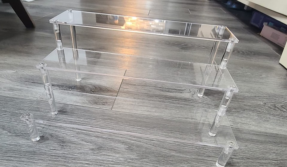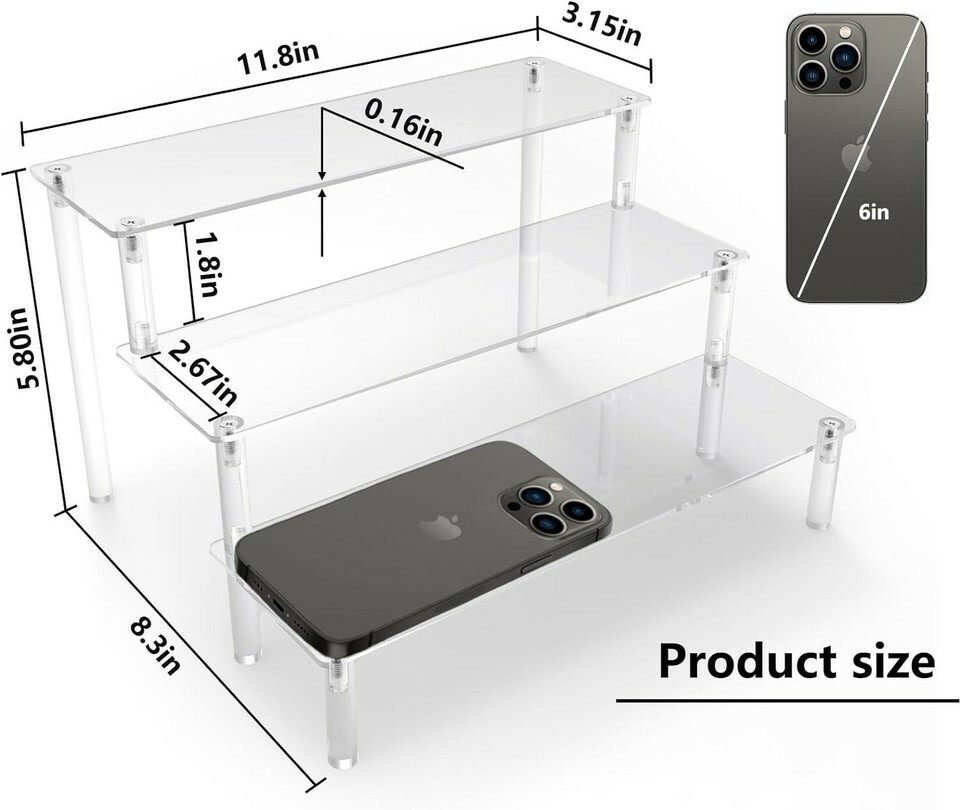 ??SIZE?: Every acrylic panel is 12" long and 3.15" wide, the height of each tier is 2", the total height is 8".