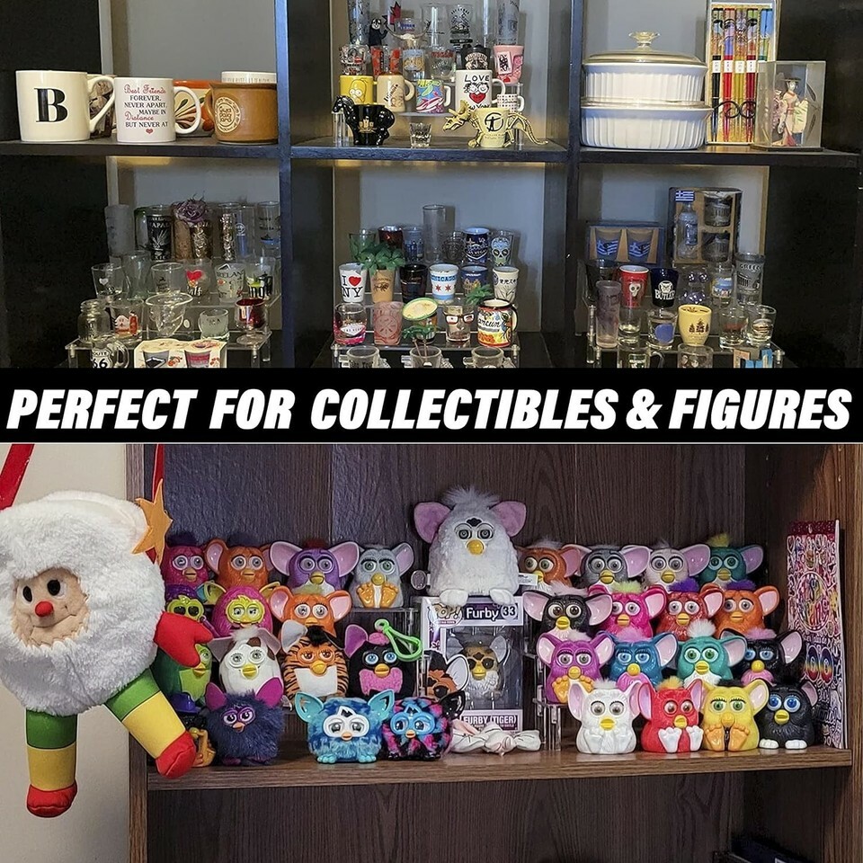 ??MATERIAL?:Our clear display risers are made of premium grade 1/6? acrylic, they are perfect for displaying amiibo funko pop figures, cupcakes stand for table,cosmetics,cabinet, countertops, and 1/6? thick make them more stable and durable.