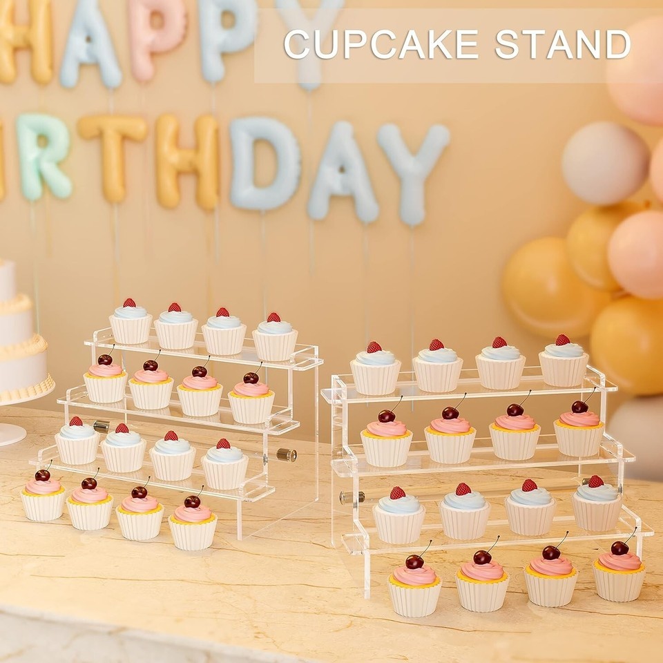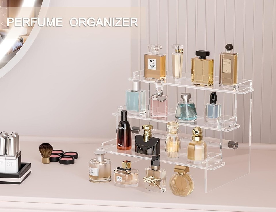 STURDY ACRYLIC ULTRA CLEAR - Meteou acrylic perfume organizer is made of high quality thickened acrylic, BPA-free, reuseble. Compared to rotating storage shelves, we use tier acrylic stand to see the perfume, lotion, makeup on each layer more clearly, It can create a floating visual effect that makes your items more attractive and organized. And as a dessert / cupcake stand is also ideal for organizing and displaying at birthday, wedding, exhibit, vendor, etc.