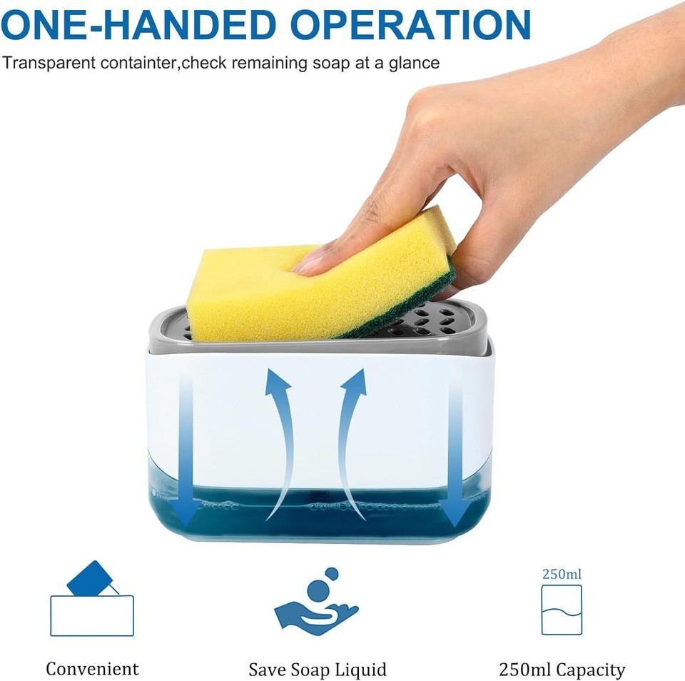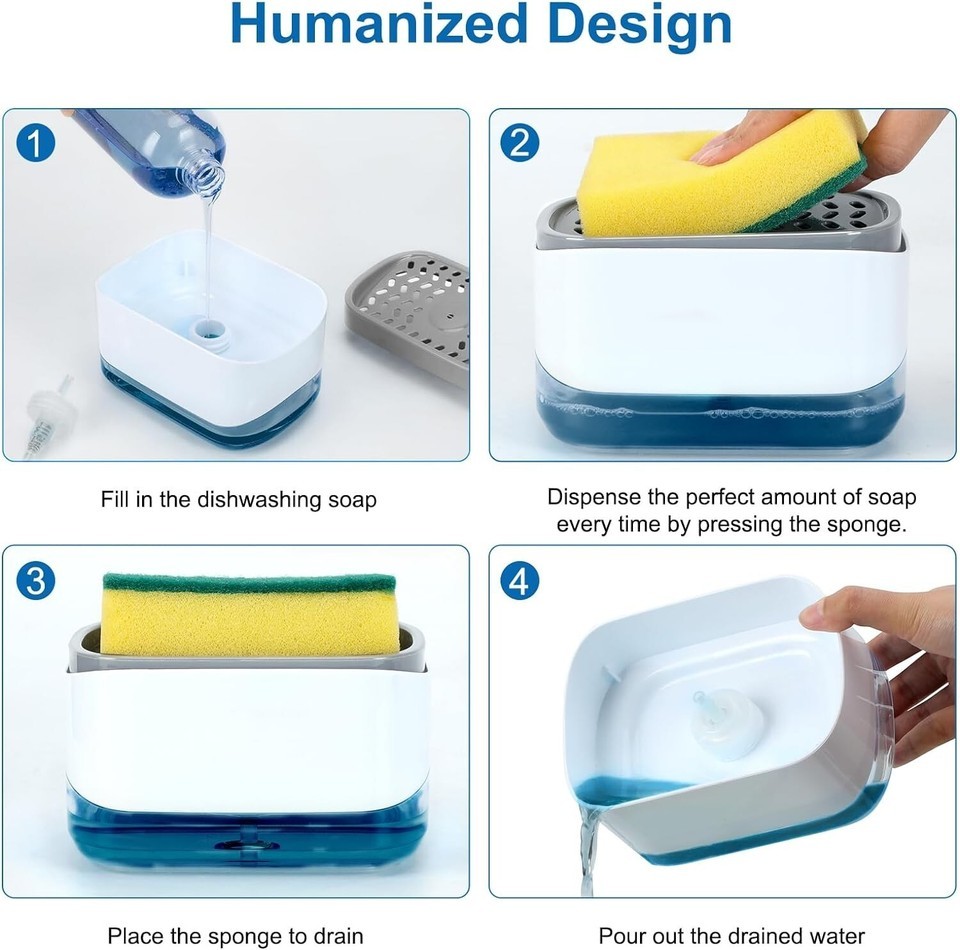 No More Waste of Time Soap! -It dispense the perfect amount of soap onto the sponge every time. That helps you reduce wasted soap as you can always use a considered amount. The dispenser works with all kinds of liquid soaps