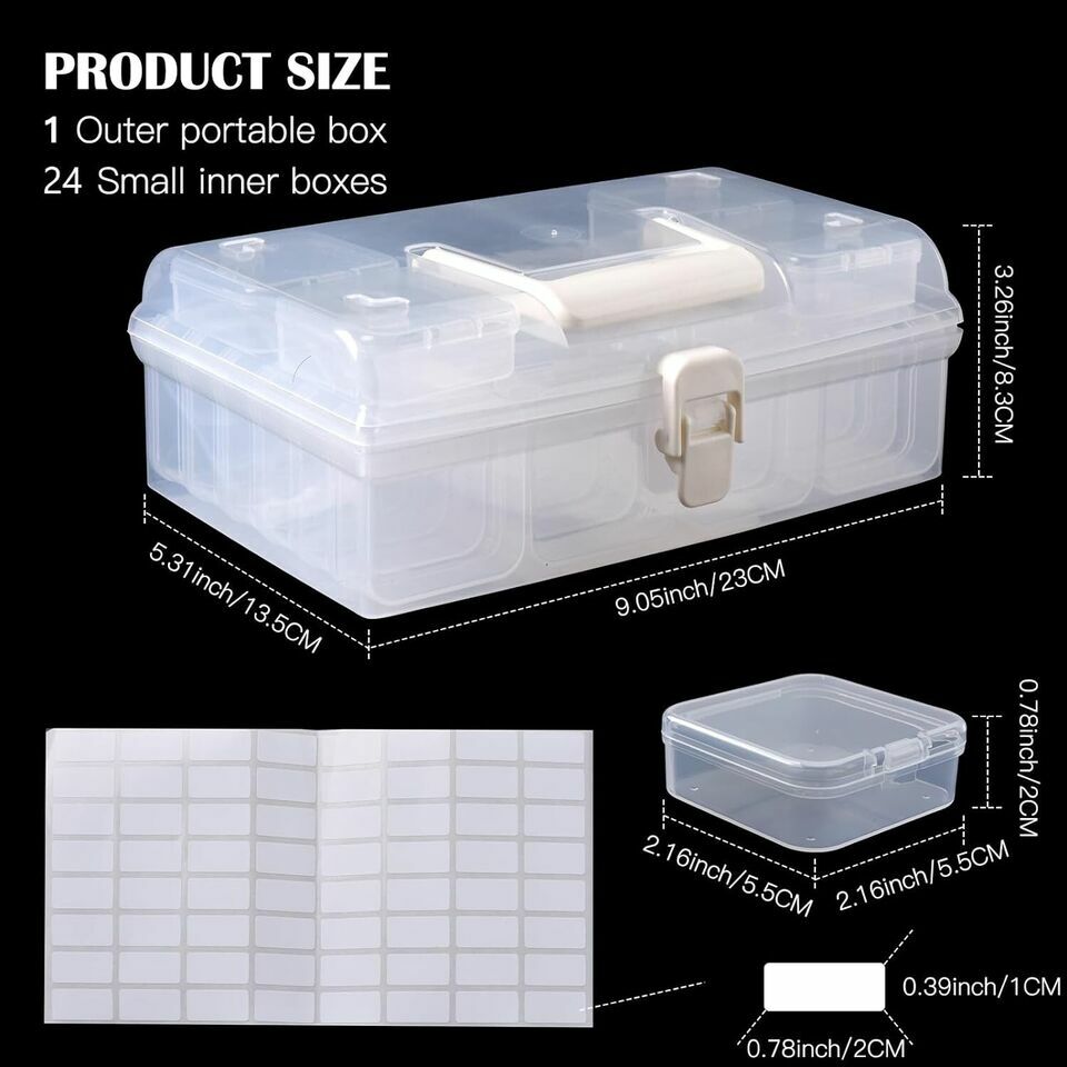 Wide Application(Not only for beads!): Comes with 24 small clear plastic boxes with lids, you can label and sort them to perfectly organize your small items. It can also be used to store all kinds of tiny items such as jewelry, nail crafts, hair ties, clasps, buttons, stickers, screws and other knick-knacks.