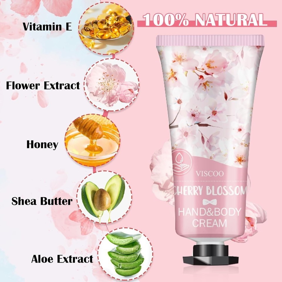 ??7 Pack Natural Hand Cream Gift Set?7 different fragrances,Including rose,cherry blossom,bluebell,grape,lemon,melon,shea butter.You can choose different fragrances every day to have a good mood.You can also share hand lotion with friends and familys.
