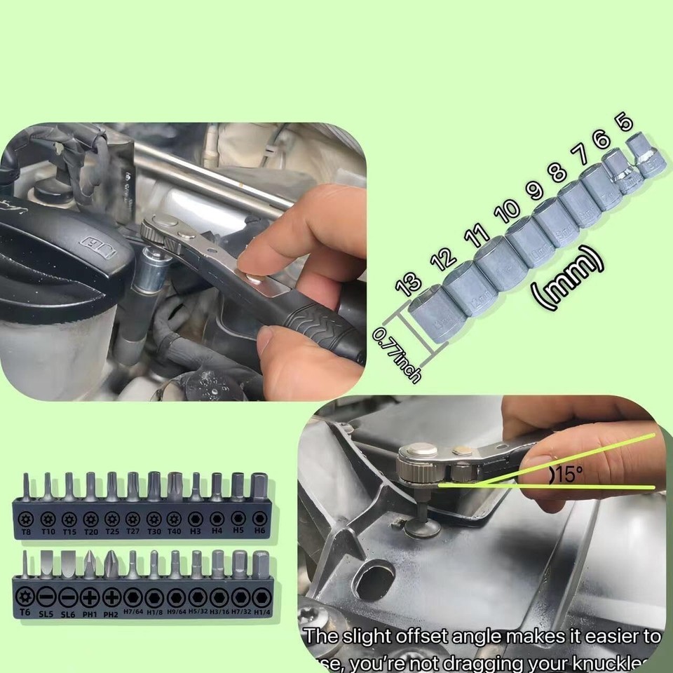 Right angle screwdriver set 35 in 1 1/4 mini ratchet wrench Metric and SAE Hex