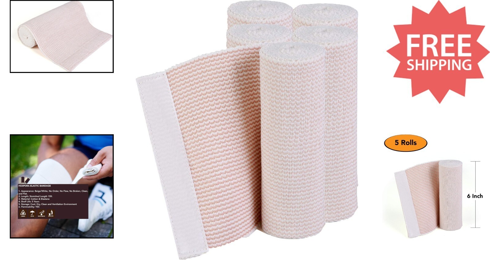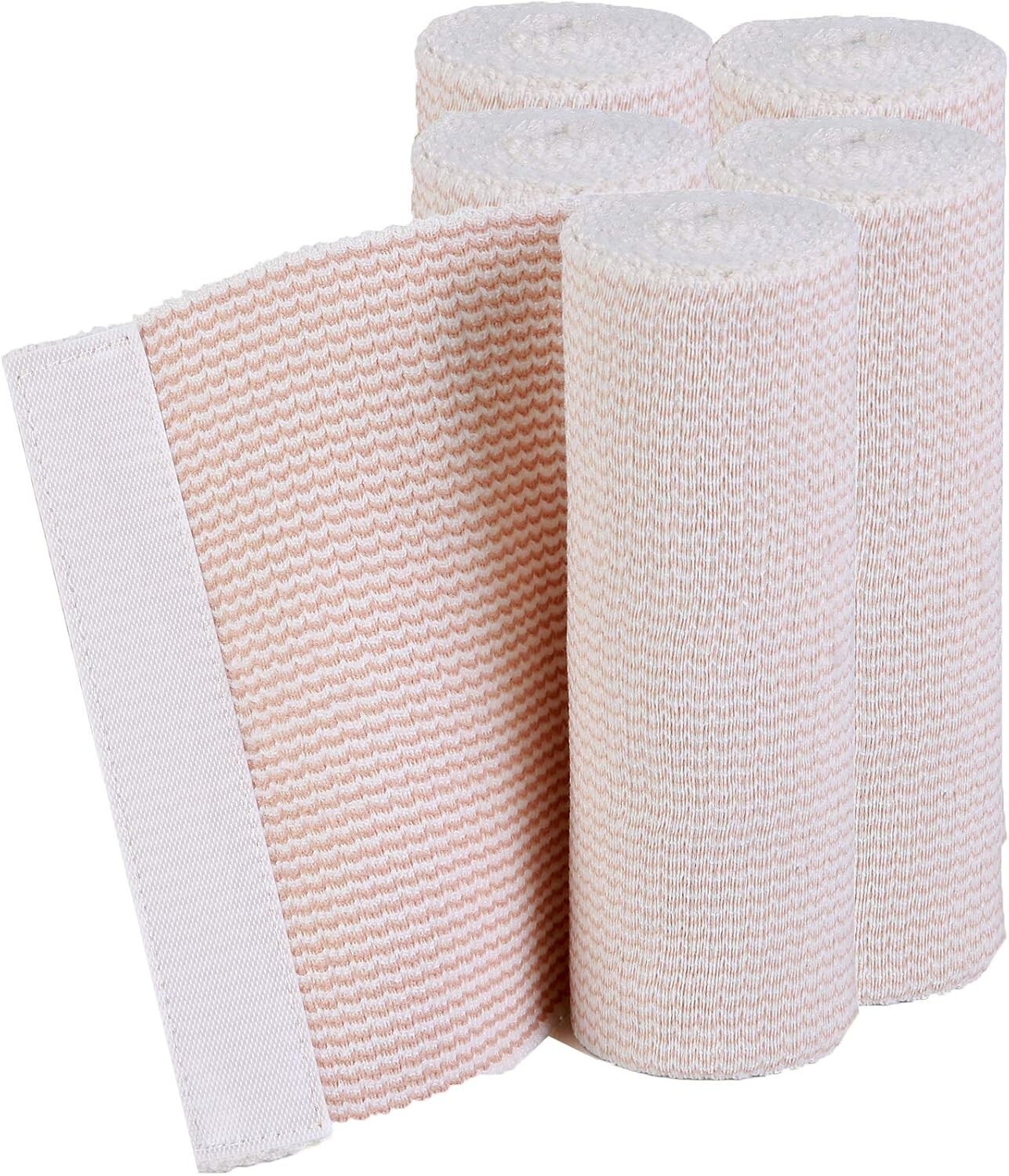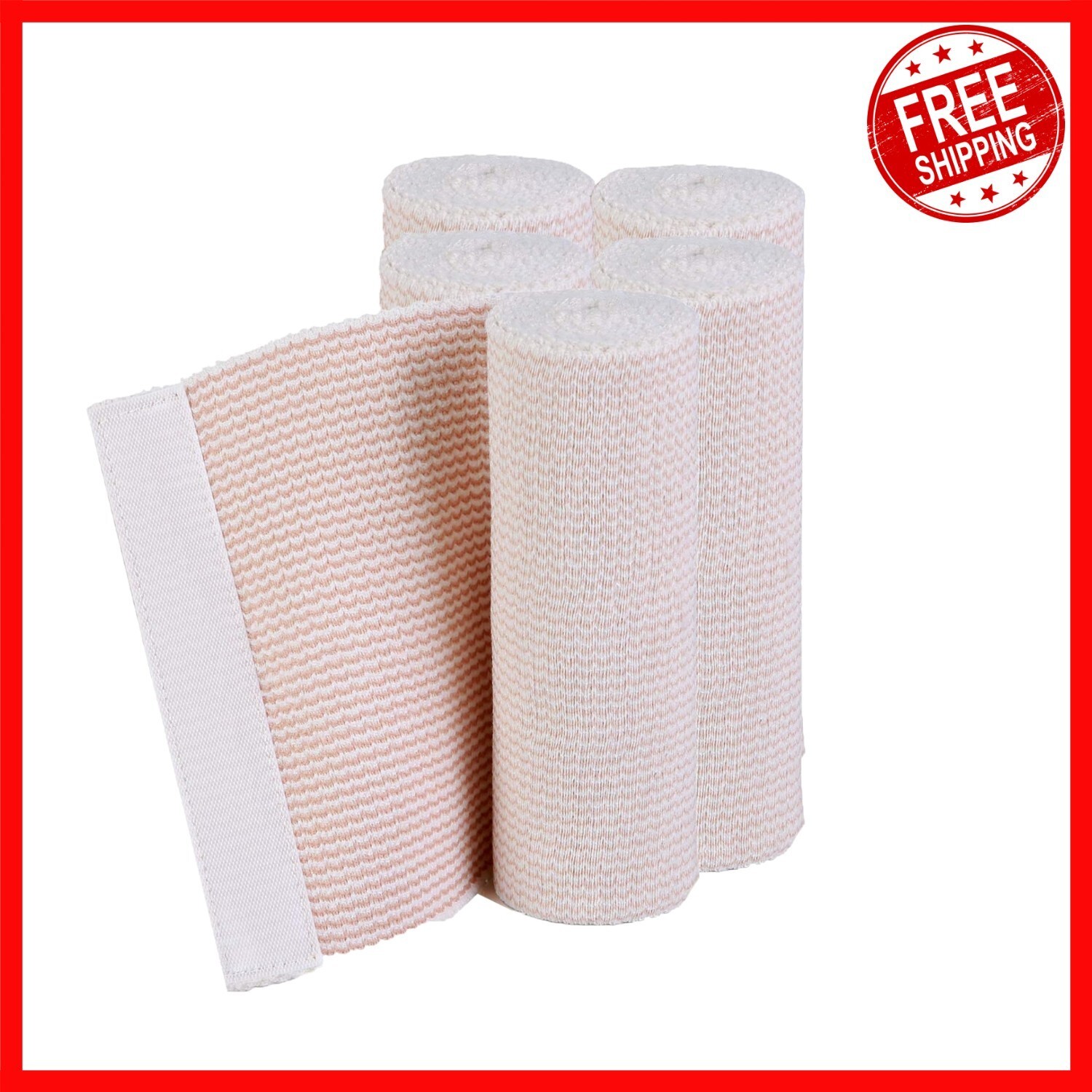 Versatile 6 Inch Cotton Compression Bandages - Hypoallergenic Reusable, 5 Pack