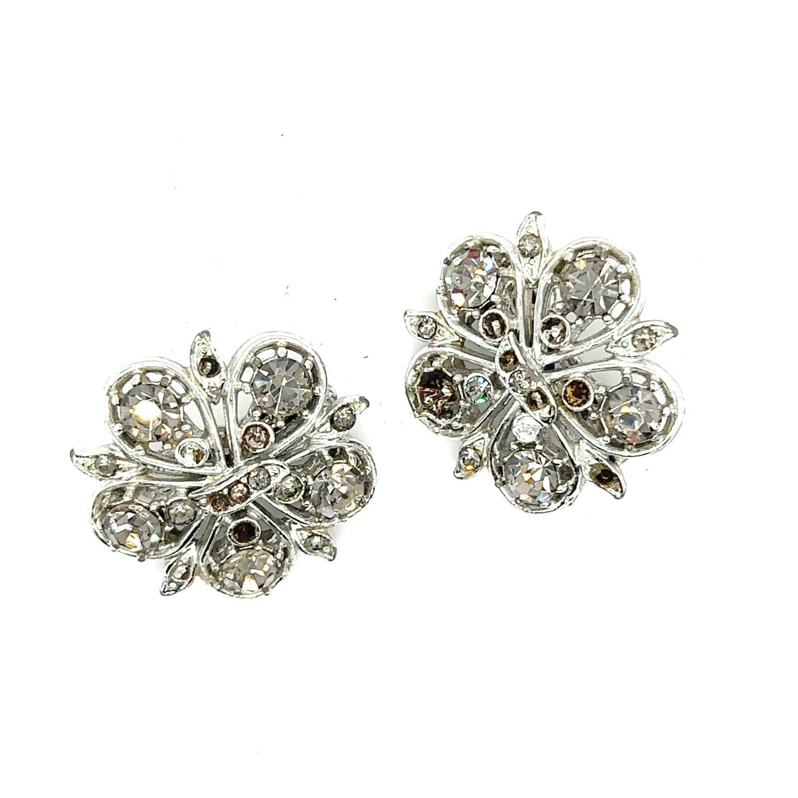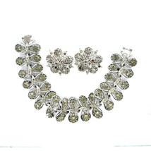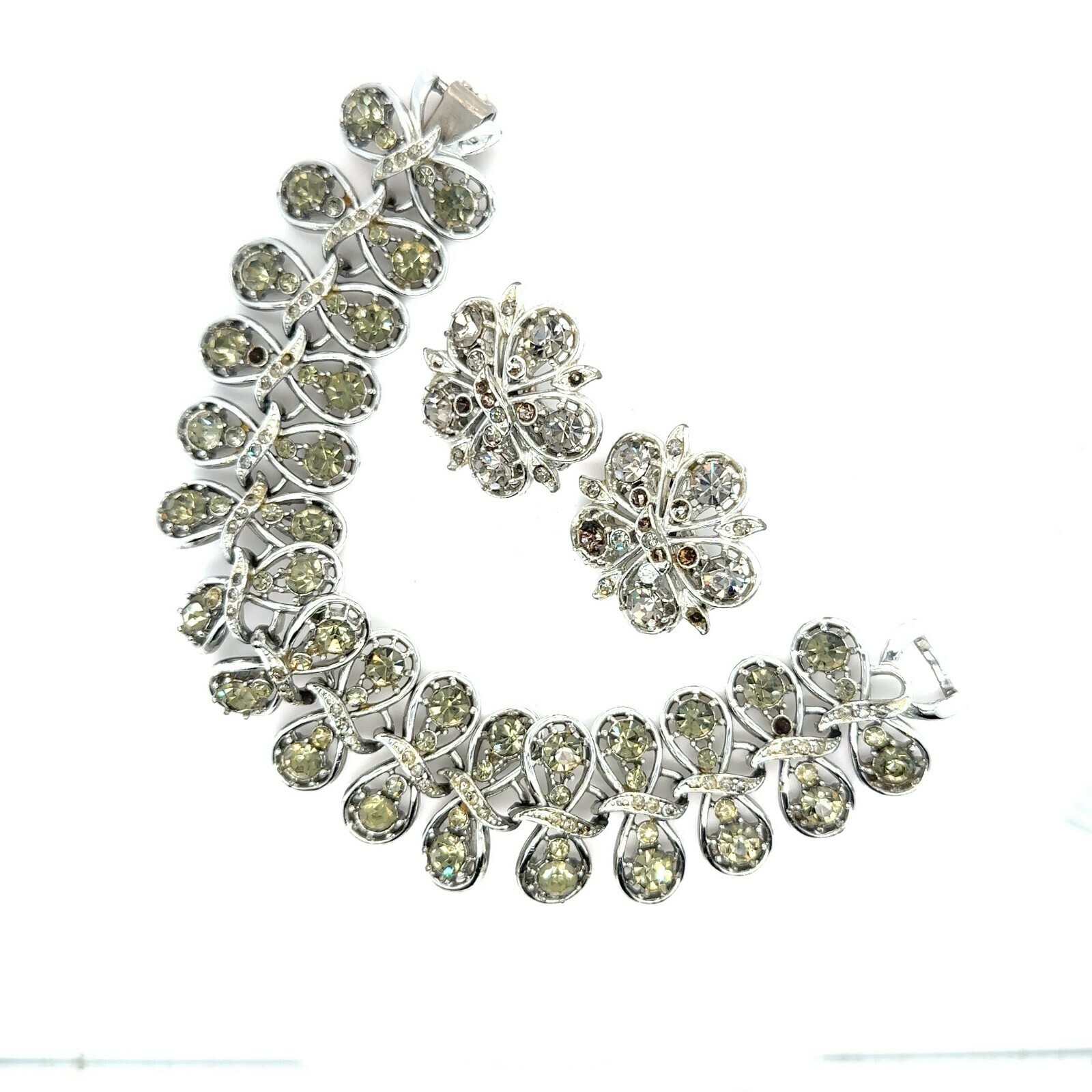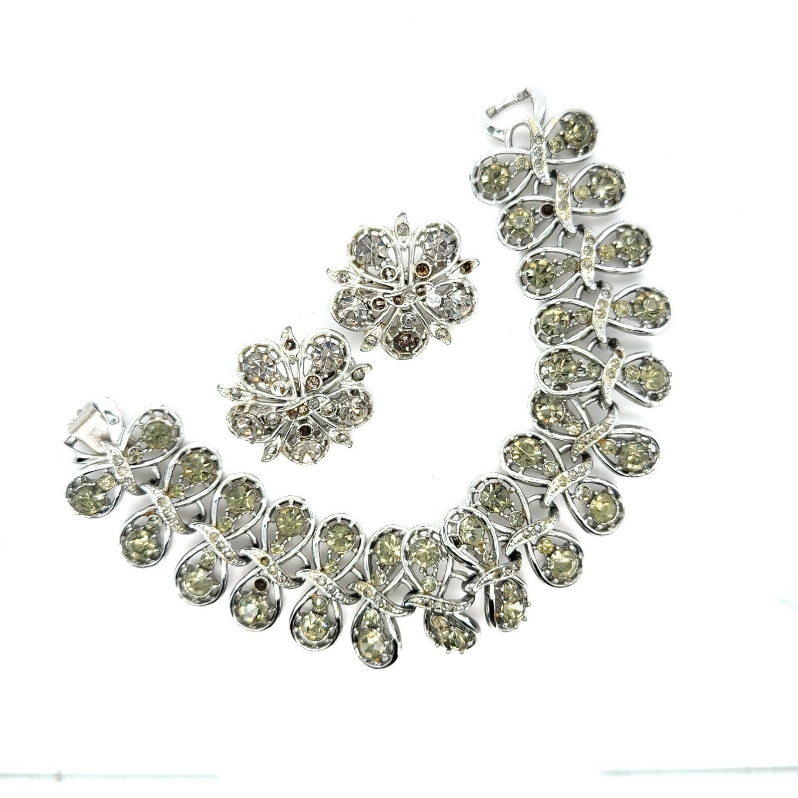 The florette clip on earrings and matching bracelet feature smokey rhinestones.