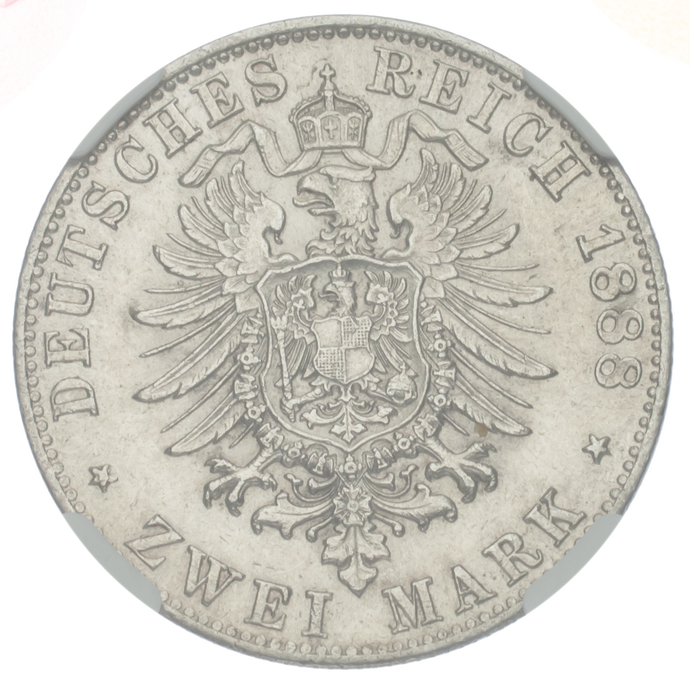 1888 J Germany 2 Mark 2M Silver Coin Hamburg NGC Graded UNC Details