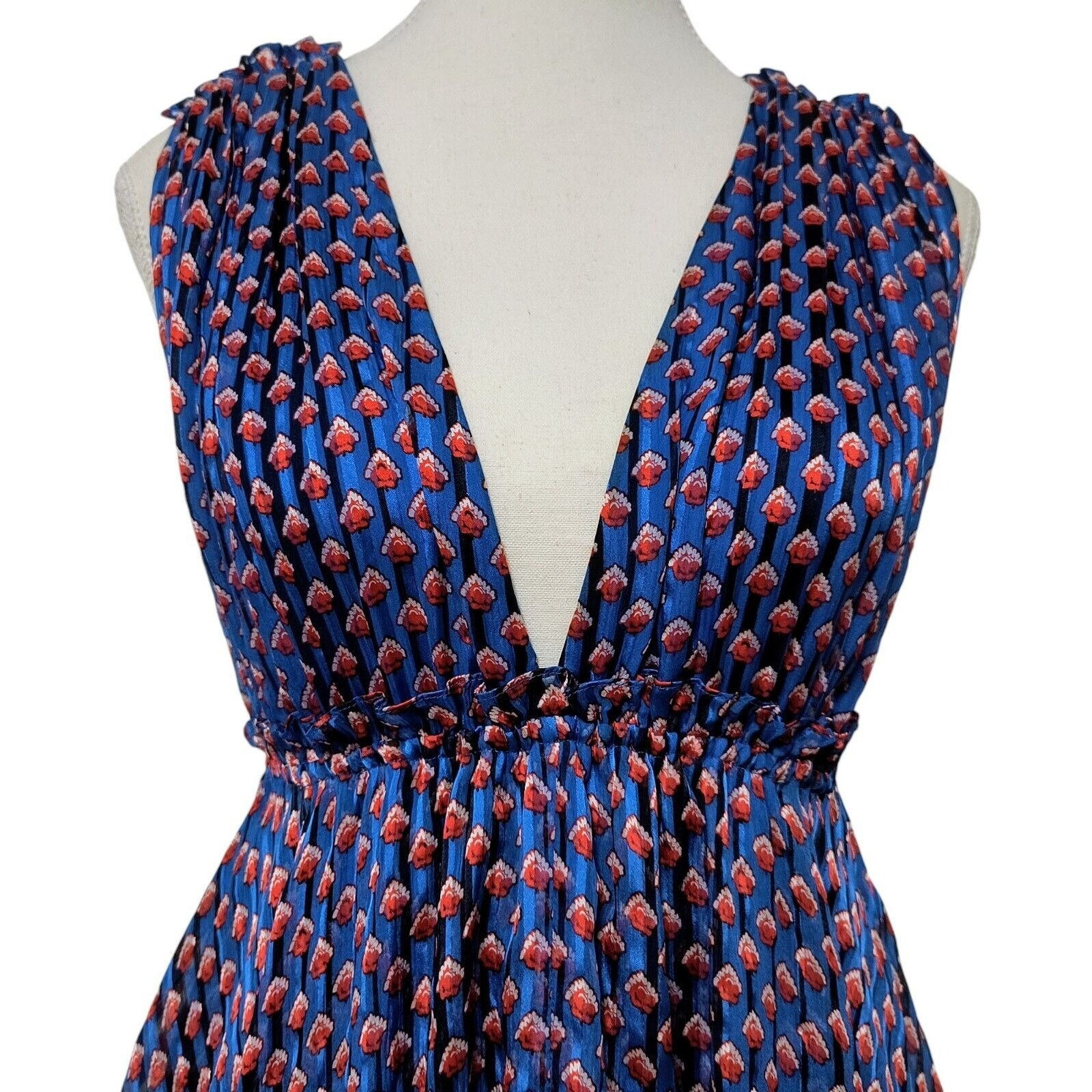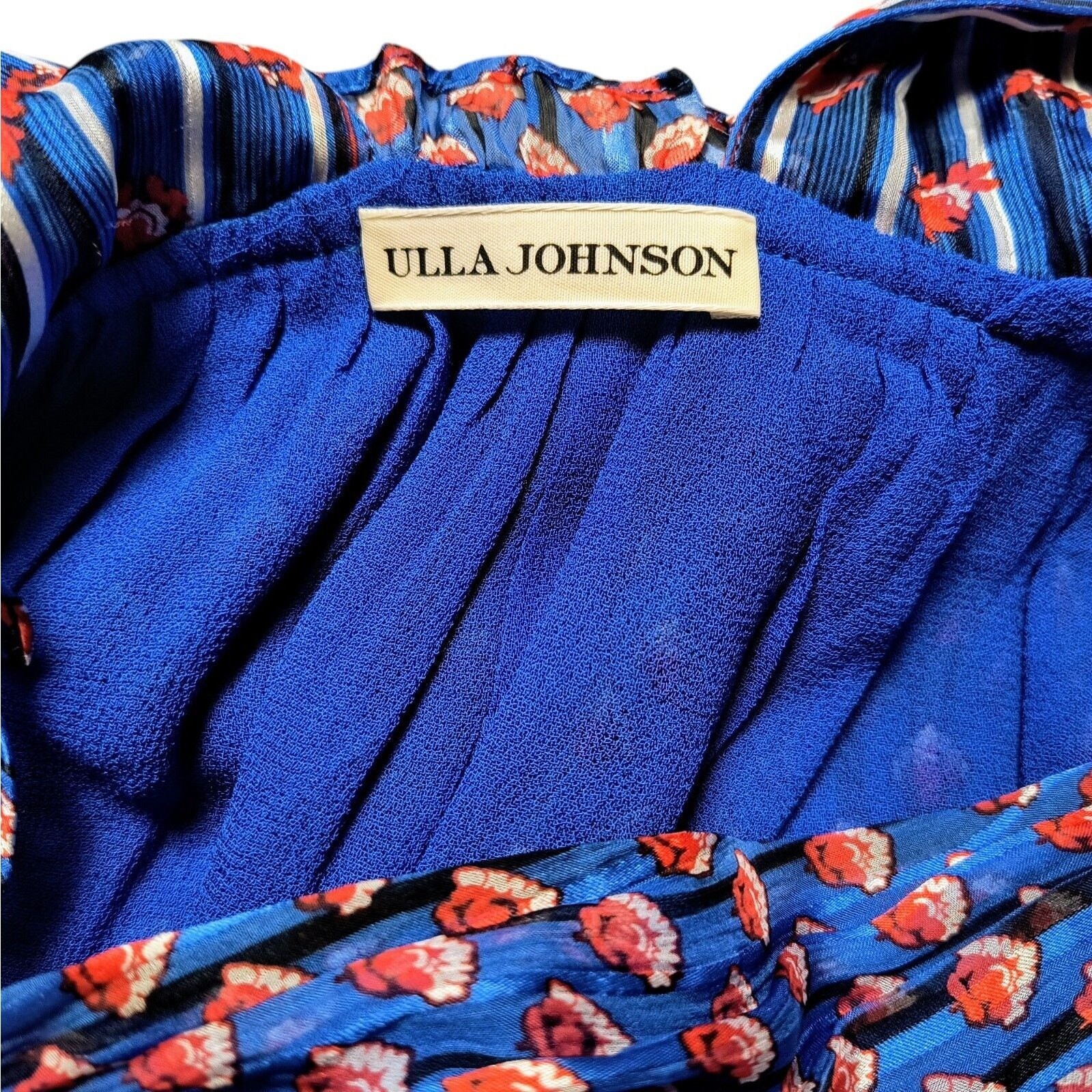 Ulla Johnson Colette Dress Size 4 Cerulean Blue Red Striped Floral 100% Silk Empire Waist Babydoll Y2K
