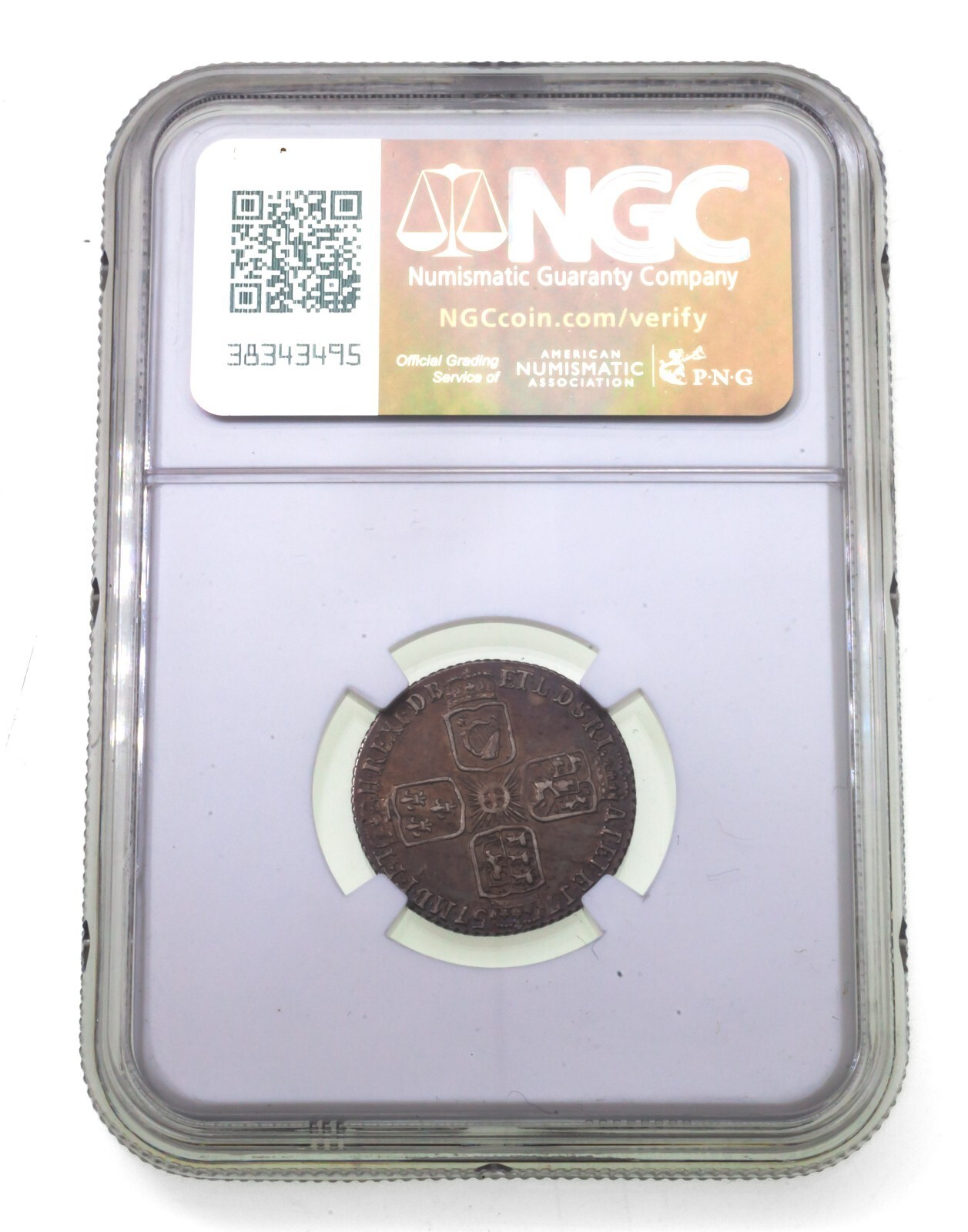 Sealed in an NGC holder with the label "1757 G.BRITAIN 6P"