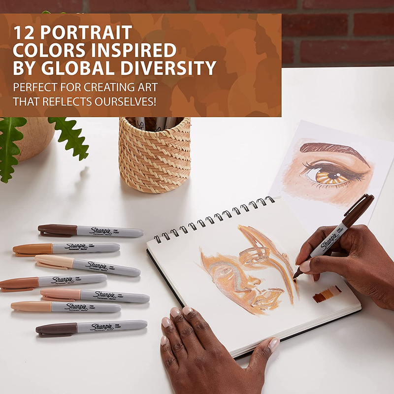 Create portraits and artwork that reflect ourselves with this collection of Sharpie Permanent Markers. Featuring 12 markers in assorted skin tone shades, this set of markers is inspired by our diversity, to make your creations more detailed and realistic. Made to write practically everywhere, Sharpie markers feature iconic permanent ink that marks on paper, plastic, metal, and most other surfaces. The remarkably resilient ink dries quickly and resists fading and water. Featuring a versatile fine point for leaving impressive marks, the skin tone collection of Sharpie Permanent Markers ignites courageous self-expression.