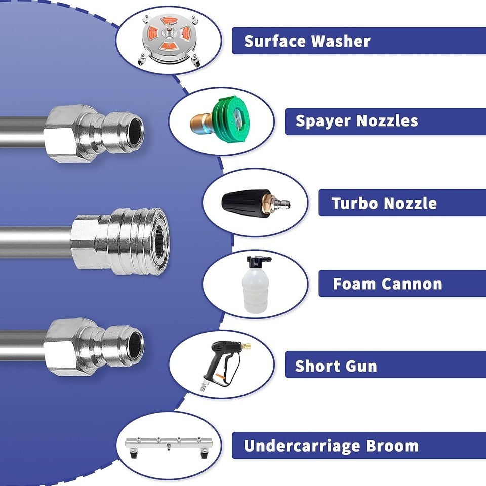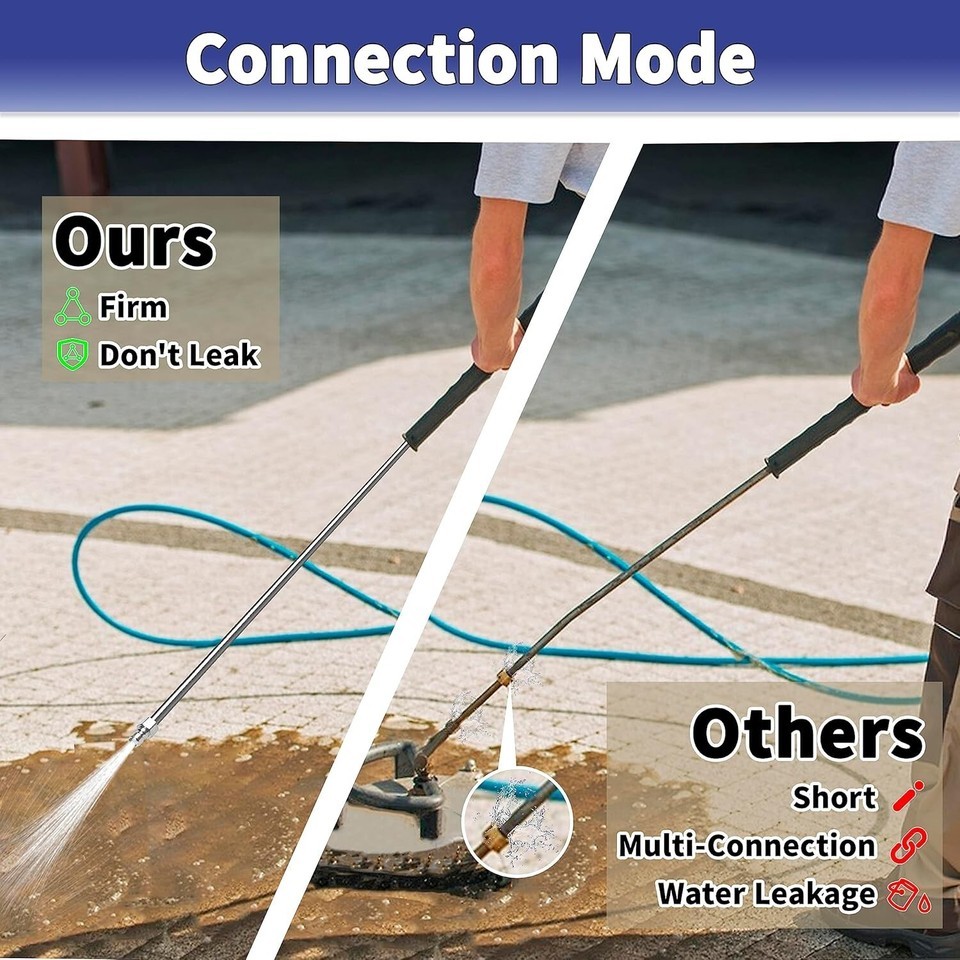 Pressure Washer Wand 10ft: 2PCS power washer extension wand connection can be extended up to 10ft and washed to higher and more difficult to clean to reach. Compared to 16inch pressure washer wand extender,ours are more stable and efficient