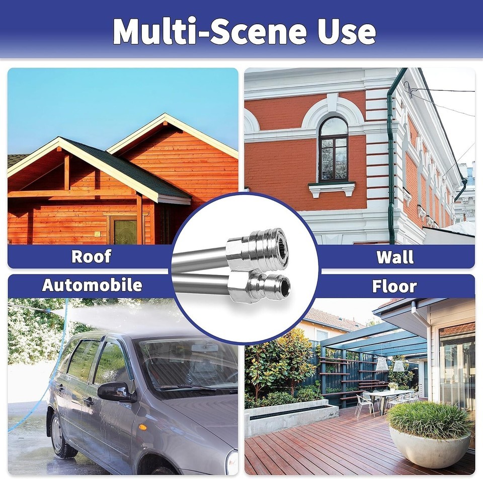 Wide Application: Pressure washer wand is Suitable for pressure cleaning machine gun, pressure cleaning machine foam gun, water broom, chassis cleaning machine, surface cleaning machine,cleaning brush, gutter cleaning machine accessories. It can also be used outdoors, such as driveways, sidewalks, decks, roofs, and your car. It can also be used in hard-to-reach areas, such as house siding, shutters, Windows,etc