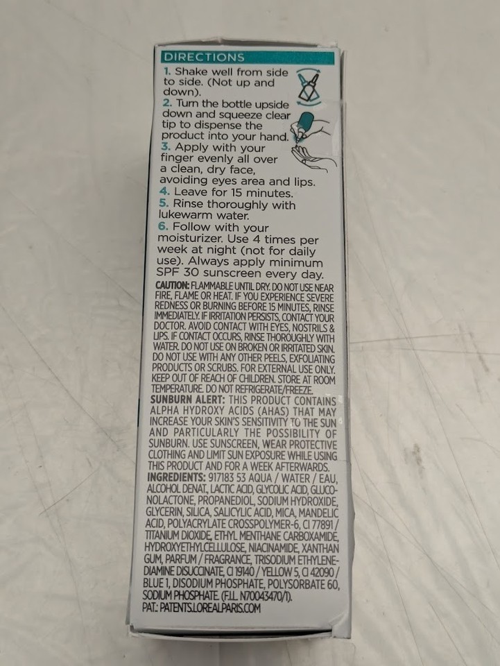 L'Oreal Paris Bright Reveal Dark Spot Exfoliant Peel, your gentle exfoliating solution with exfoliating strength equivalent to 1 professional peel. It reduces post-acne marks, renews skin tone and texture, and brightens. L?Oreal Paris? chemical peel for face is powered by a unique combination of AHAs (glycolic acid, lactic acid, mandelic acids), BHA, and PHA. This dark spot remover for face is dermatologist-validated, suitable for sensitive skin, and made for all skin tones.