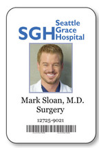 This listing is for a name badge tag FOR A HALLOWEEN COSTUME PROP FOR MARK SLOAN FROM GREYS ANATOMY TV SERIES. Your badge will arrive with a SAFETY PIN fastener on the back. This badge is an RECTANGLE SHAPED WITH A WHITE BACKGROUND ROUNDED EDGES AND MEASURES APPROX. 2" x 3". This badge is printed in full color with a clear overlay that protects the print for a durable long lasting badge. YOUR BADGE WILL SHIP WITHIN 24 HOURS FREE FIRST CLASS MAIL, US ONLY. No hidden charges or set up fees. We also carry a premium econo BLANK name badge line for businesses with high turn over employees (these badges can be personalized with crystal clear labels.)