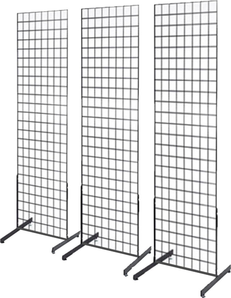 Gridwall Panel Tower with T-Base Floorstanding Display Kit, 3-Pack Black 2'x6'