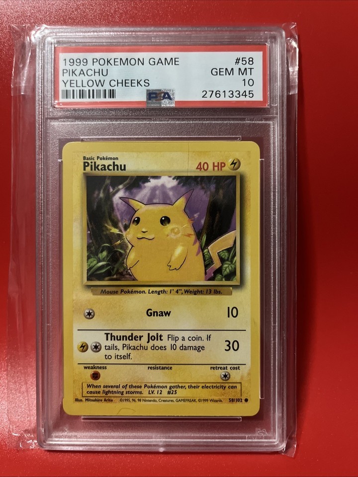 Authenticity Guarantee 1999 Pikachu 58/102 Yellow Cheeks PSA 10