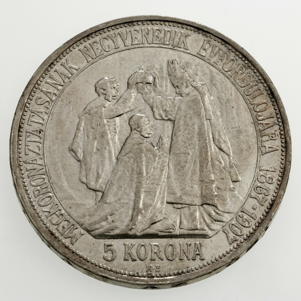 1907 Hungary 5 Korona Silver Coin Restart 40th Anniversary In Condition- show...